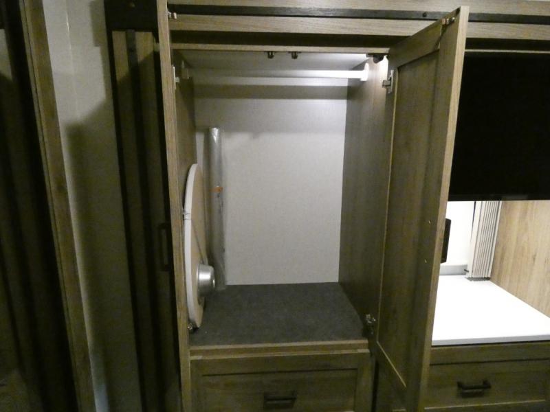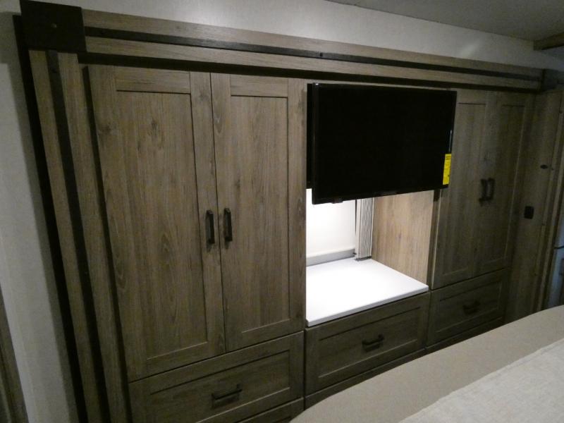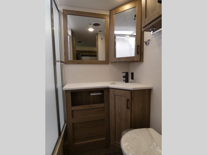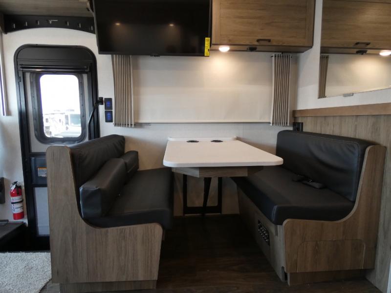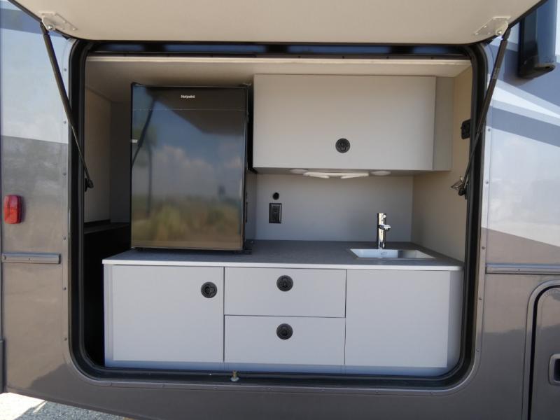 Head across the country or state in this cozy coach that can sleep six. The included Tailgate package provides a refrigerator, a storage cabinet, LED lights, LP Quick-Connect, a stainless steel sink, a wall mounted bottle opener, and a paper towel holder. Inside you can sleep in the rear bedroom which includes sliding doors for privacy, and the full bathroom allows you to stay refreshed all day. You can make all your meals with the appliances provided, and dine at the dinette with a Hi-Lo table. The furniture also doubles as extra sleeping space.