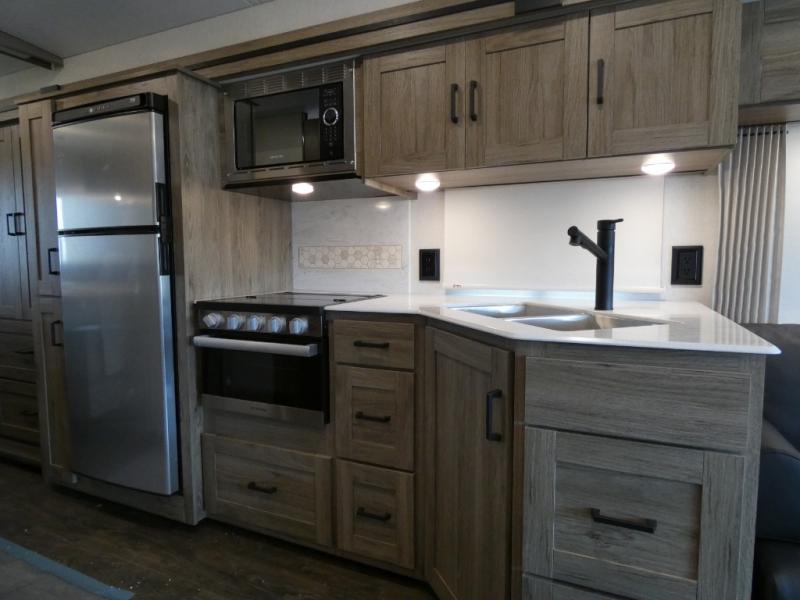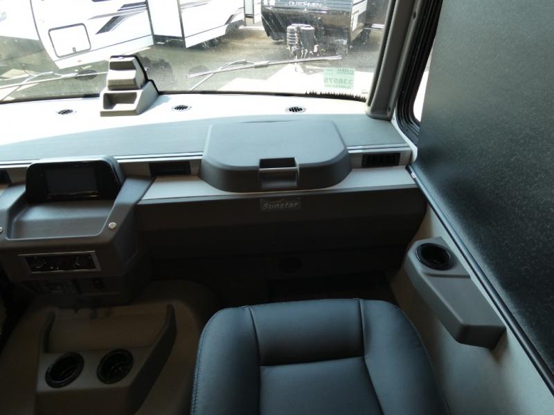 With any Sunstar Class A gas motorhome by Winnebago you begin with a Ford F53 chassis and an V8 engine that provides ample towing power, a trailer hitch with 5,000 lb. drawbar, premium high-gloss sidewall skin, plus automatic hydraulic leveling jacks for easy setup. Also included are two deep-cycle Marine/RV Group 31 batteries, a 1,000-watt inverter, and a solar panel/battery charger prep kit. The interior provides features such as the Winnebago Control™ systems monitor with 7" touchscreen monitor and available app, residential vinyl flooring, and a large panoramic windshield to enjoy while relaxing inside and driving down the road. Choose your favorite Sunstar and see why these coaches offer value, comfort and user-friendly features you don't want to travel without!