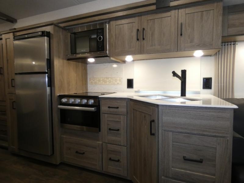 It's off to the great outdoors in this specially-designed motorhome that honors the National Parks! With an eye-catching exterior design and plenty of conveniences, the Winnebago Sunstar NPF is the perfect vehicle to take on a road trip. There's plenty of room to sleep in the king bed or sofa bed. You'll enjoy the kitchen with its stainless steel refrigerator/freezer, three-burner range top, pantry, and microwave oven. Or cook outside using the standard Tailgate Package, with exterior refrigerator, sink, LP quick connect, wall mounted bottle opener, paper towel holder, and storage cabinet. There's also a PetPal leash tie down so your best friend can keep you company safely while you cook!