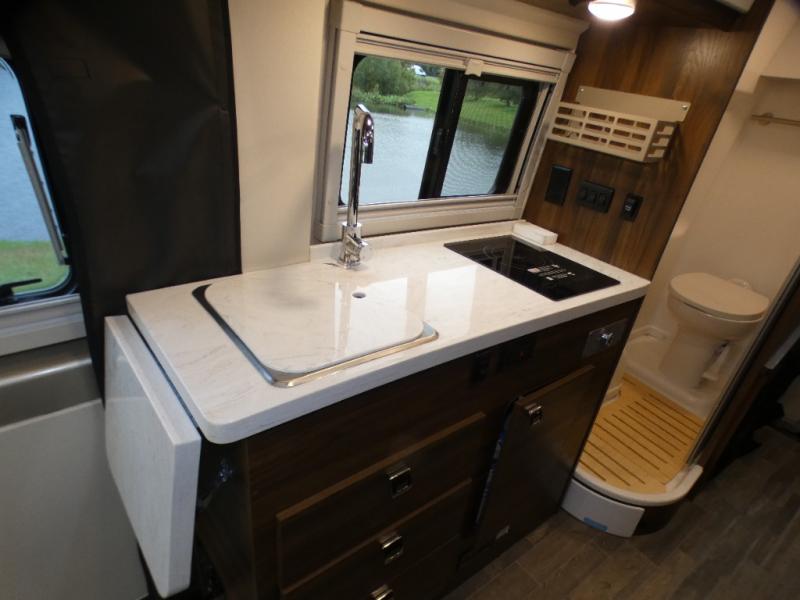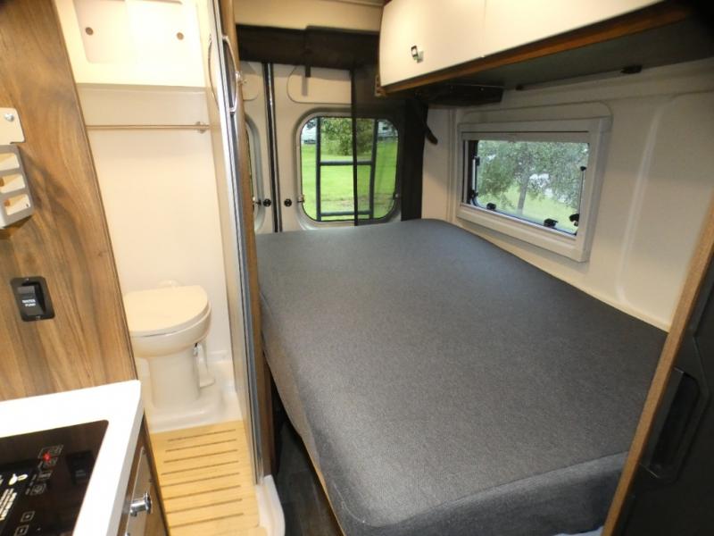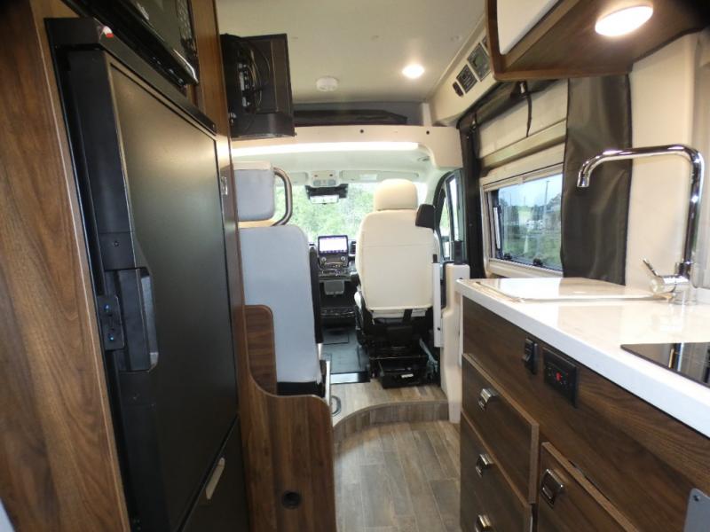 This motorhome has everything you need for a comfortable trip! You can roll out of the corner 49" x 77" bed then easily exit through the rear double doors to catch the beautiful sunrise. Freshen up in the 28" x 51" wet bath with a sliding door then head to the kitchen and grab some eggs from the two door 6.0 cu. ft. compressor-driven refrigerator/freezer then fry them on the single burner induction cooktop. The flip-up countertop extension will make your meal prepping easier and the cold water filtration system ensures you have clean water where ever you go. The two cab seats in the living area have an adjustable/removable table and mount to enjoy your meals. This model also comes with the Pure3 energy management system which has a 3-module lithium-ion energy pack, 3,200 watt inverter, a Bluetooth control module, an energy pack heating system, and a second dedicated alternator powered by the chassis engine!