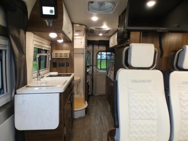 Each one of these Winnebago Travato Class B gas motorhomes are perfect for adventure seekers of all types! The rear annex extends your living space and gives you the versatility of hanging wet gear, using it as an outdoor shower, or an impromptu awning. They are powered by a Ram ProMaster 3.6L V6 gas engine with 280 HP and a 9-speed automatic transmission, and include a radio/rearview monitor system with navigation, USB ports, and more to make the drive easier than ever. The superior craftsmanship consists of a Truma Combi Eco Plus heating system that can run off of propane or electricity, aluminum running boards with logoed tread, ground-effect lighting and pet loop attachment so even your furry friends can come along. You will also find RAM Tough-Track Mounts throughout for your gear, tinted coach windows and blackout cassette shades for added privacy, plus a 24" HDTV and Bluetooth soundbar to ensure you'll never go bored!