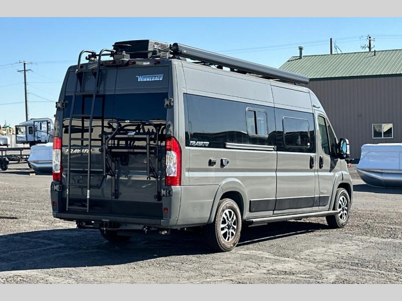 Each one of these Winnebago Travato Class B gas motorhomes are perfect for adventure seekers of all types! The rear annex extends your living space and gives you the versatility of hanging wet gear, using it as an outdoor shower, or an impromptu awning. They are powered by a Ram ProMaster 3.6L V6 gas engine with 280 HP and a 9-speed automatic transmission, and include a radio/rearview monitor system with navigation, USB ports, and more to make the drive easier than ever. The superior craftsmanship consists of a Truma Combi Eco Plus heating system that can run off of propane or electricity, aluminum running boards with logoed tread, ground-effect lighting and pet loop attachment so even your furry friends can come along. You will also find RAM Tough-Track Mounts throughout for your gear, tinted coach windows and blackout cassette shades for added privacy, plus a 24" HDTV and Bluetooth soundbar to ensure you'll never go bored!