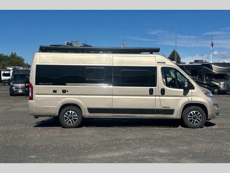 Each one of these Winnebago Travato Class B gas motorhomes are perfect for adventure seekers of all types! The rear annex extends your living space and gives you the versatility of hanging wet gear, using it as an outdoor shower, or an impromptu awning. They are powered by a Ram ProMaster 3.6L V6 gas engine with 280 HP and a 9-speed automatic transmission, and include a radio/rearview monitor system with navigation, USB ports, and more to make the drive easier than ever. The superior craftsmanship consists of a Truma Combi Eco Plus heating system that can run off of propane or electricity, aluminum running boards with logoed tread, ground-effect lighting and pet loop attachment so even your furry friends can come along. You will also find RAM Tough-Track Mounts throughout for your gear, tinted coach windows and blackout cassette shades for added privacy, plus a 24" HDTV and Bluetooth soundbar to ensure you'll never go bored!