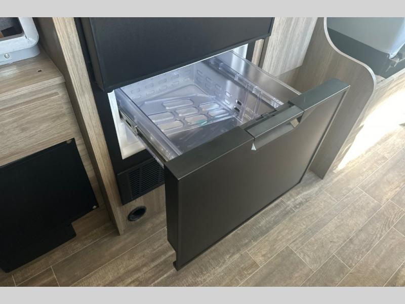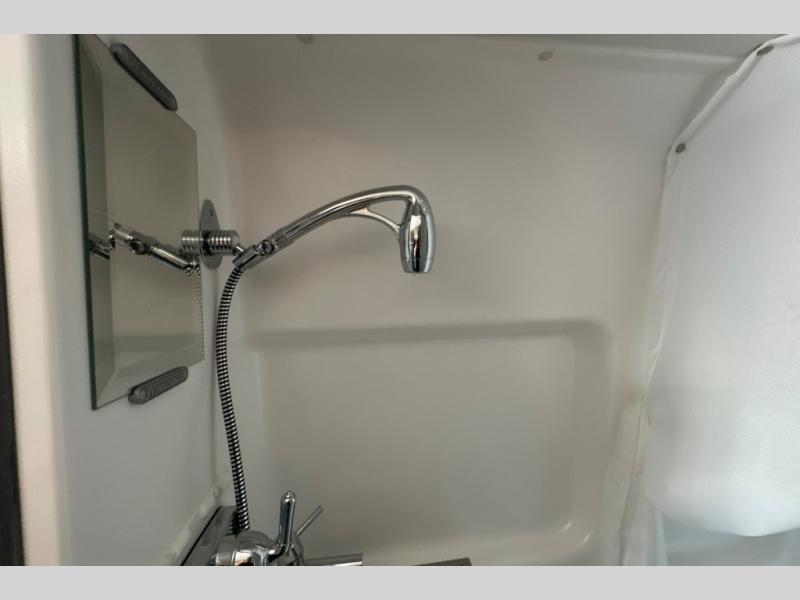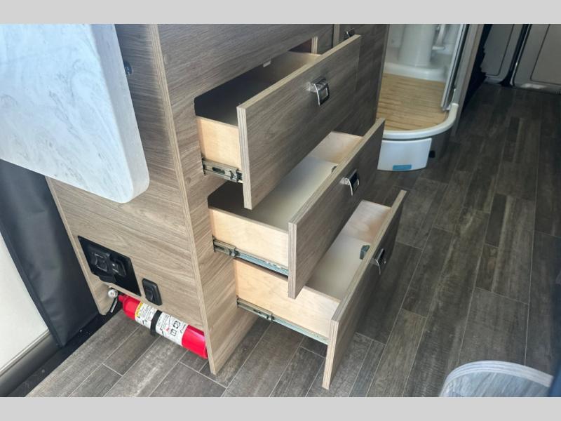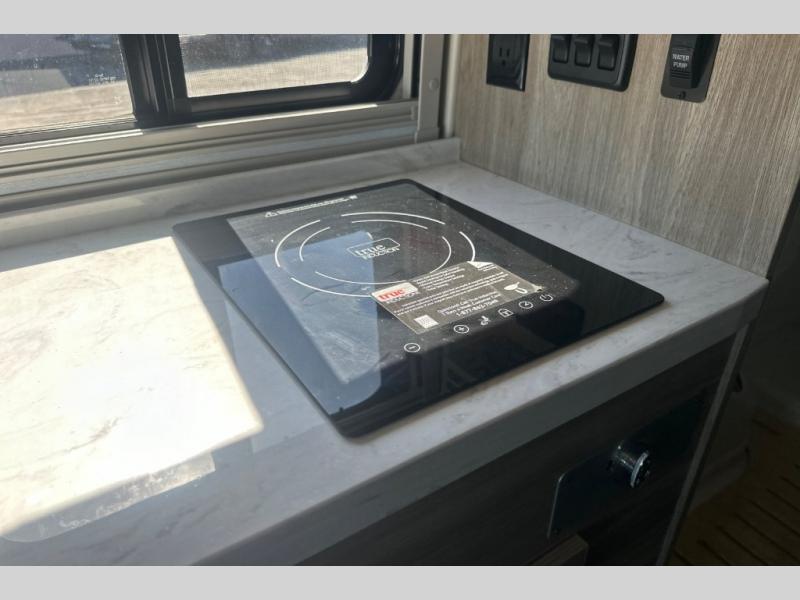 This motorhome has everything you need for a comfortable trip! You can roll out of the corner 49" x 77" bed then easily exit through the rear double doors to catch the beautiful sunrise. Freshen up in the 28" x 51" wet bath with a sliding door then head to the kitchen and grab some eggs from the two door 6.0 cu. ft. compressor-driven refrigerator/freezer then fry them on the single burner induction cooktop. The flip-up countertop extension will make your meal prepping easier and the cold water filtration system ensures you have clean water where ever you go. The two cab seats in the living area have an adjustable/removable table and mount to enjoy your meals. This model also comes with the Pure3 energy management system which has a 3-module lithium-ion energy pack, 3,200 watt inverter, a Bluetooth control module, an energy pack heating system, and a second dedicated alternator powered by the chassis engine!