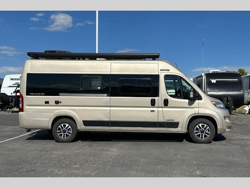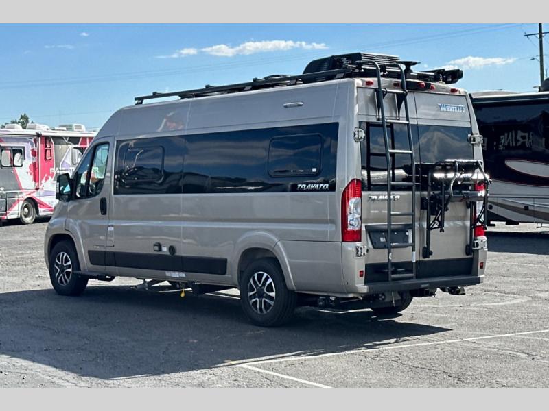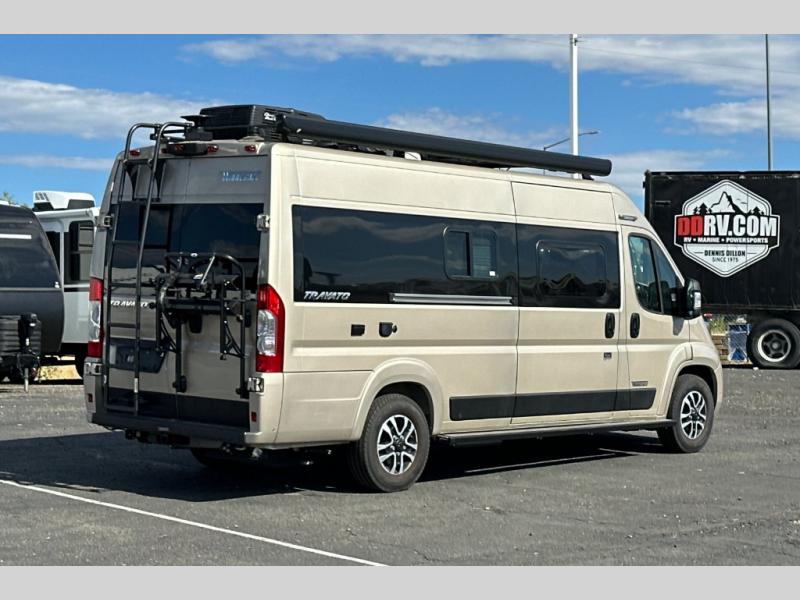 Each one of these Winnebago Travato Class B gas motorhomes are perfect for adventure seekers of all types! The rear annex extends your living space and gives you the versatility of hanging wet gear, using it as an outdoor shower, or an impromptu awning. They are powered by a Ram ProMaster 3.6L V6 gas engine with 280 HP and a 9-speed automatic transmission, and include a radio/rearview monitor system with navigation, USB ports, and more to make the drive easier than ever. The superior craftsmanship consists of a Truma Combi Eco Plus heating system that can run off of propane or electricity, aluminum running boards with logoed tread, ground-effect lighting and pet loop attachment so even your furry friends can come along. You will also find RAM Tough-Track Mounts throughout for your gear, tinted coach windows and blackout cassette shades for added privacy, plus a 24" HDTV and Bluetooth soundbar to ensure you'll never go bored!
