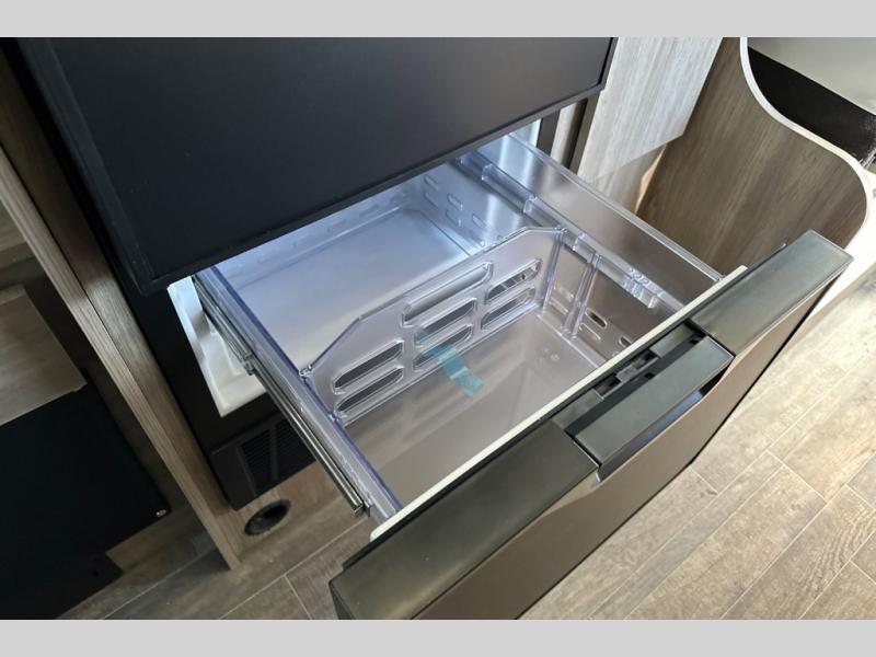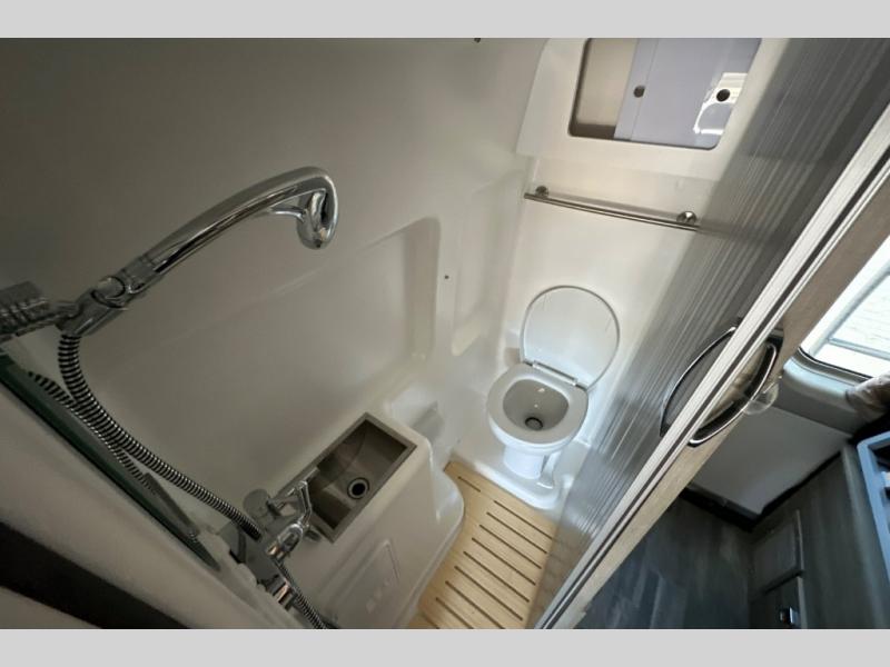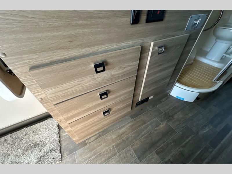 This motorhome has everything you need for a comfortable trip! You can roll out of the corner 49" x 77" bed then easily exit through the rear double doors to catch the beautiful sunrise. Freshen up in the 28" x 51" wet bath with a sliding door then head to the kitchen and grab some eggs from the two door 6.0 cu. ft. compressor-driven refrigerator/freezer then fry them on the single burner induction cooktop. The flip-up countertop extension will make your meal prepping easier and the cold water filtration system ensures you have clean water where ever you go. The two cab seats in the living area have an adjustable/removable table and mount to enjoy your meals. This model also comes with the Pure3 energy management system which has a 3-module lithium-ion energy pack, 3,200 watt inverter, a Bluetooth control module, an energy pack heating system, and a second dedicated alternator powered by the chassis engine!