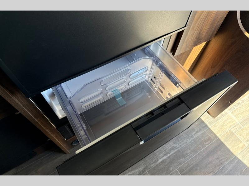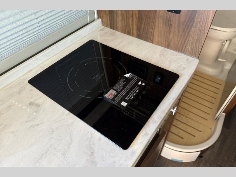 This motorhome has everything you need for a comfortable trip! You can roll out of the corner 49" x 77" bed then easily exit through the rear double doors to catch the beautiful sunrise. Freshen up in the 28" x 51" wet bath with a sliding door then head to the kitchen and grab some eggs from the two door 6.0 cu. ft. compressor-driven refrigerator/freezer then fry them on the single burner induction cooktop. The flip-up countertop extension will make your meal prepping easier and the cold water filtration system ensures you have clean water where ever you go. The two cab seats in the living area have an adjustable/removable table and mount to enjoy your meals. This model also comes with the Pure3 energy management system which has a 3-module lithium-ion energy pack, 3,200 watt inverter, a Bluetooth control module, an energy pack heating system, and a second dedicated alternator powered by the chassis engine!
