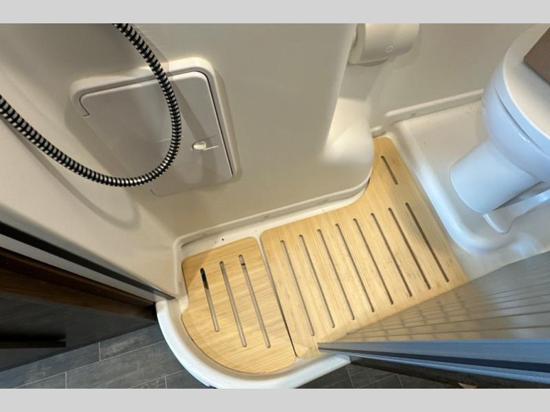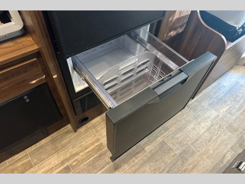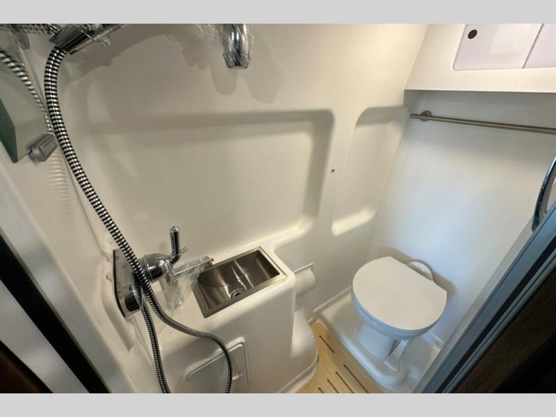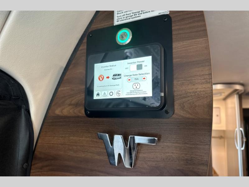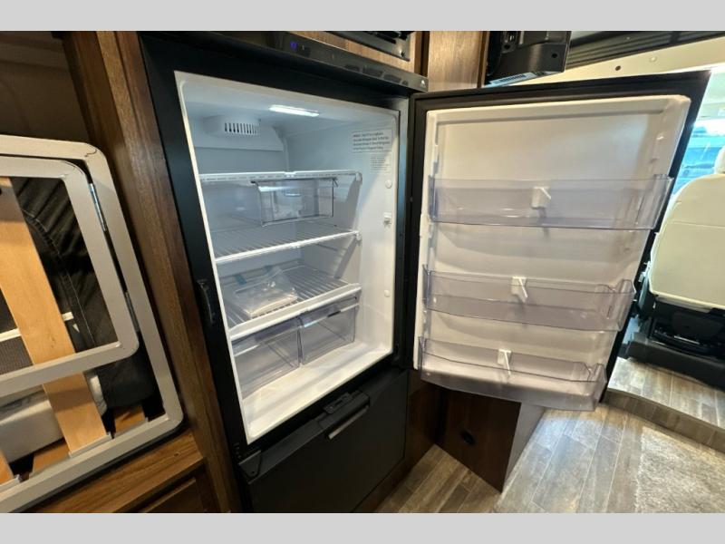This motorhome has everything you need for a comfortable trip! You can roll out of the corner 49" x 77" bed then easily exit through the rear double doors to catch the beautiful sunrise. Freshen up in the 28" x 51" wet bath with a sliding door then head to the kitchen and grab some eggs from the two door 6.0 cu. ft. compressor-driven refrigerator/freezer then fry them on the single burner induction cooktop. The flip-up countertop extension will make your meal prepping easier and the cold water filtration system ensures you have clean water where ever you go. The two cab seats in the living area have an adjustable/removable table and mount to enjoy your meals. This model also comes with the Pure3 energy management system which has a 3-module lithium-ion energy pack, 3,200 watt inverter, a Bluetooth control module, an energy pack heating system, and a second dedicated alternator powered by the chassis engine!