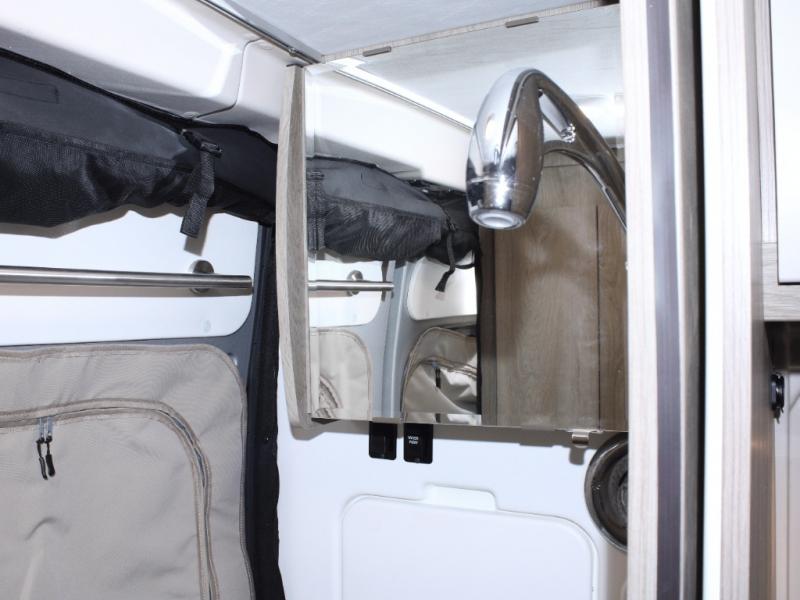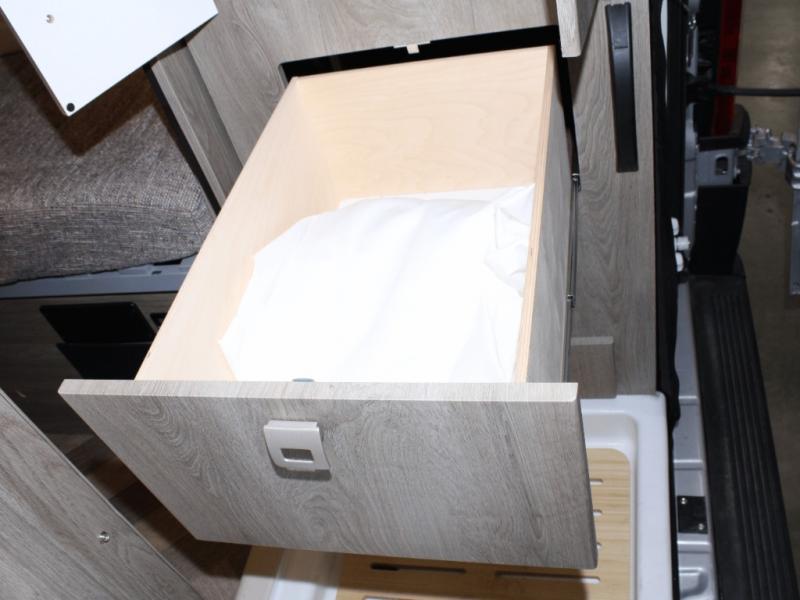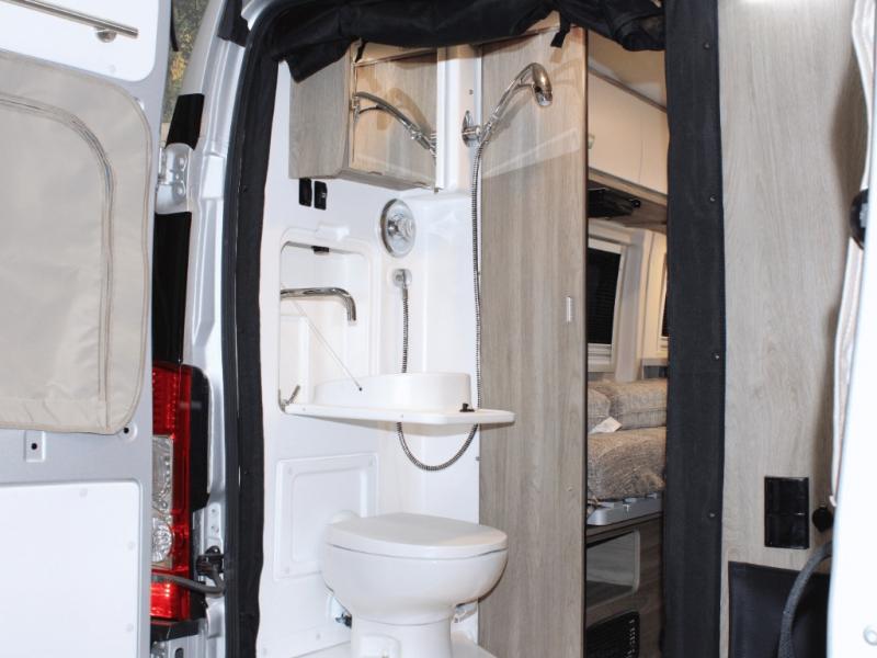 After a day on the road or on the trails, kick back on twin beds that easily convert to a roomy king with the Flex Bed system. Whether you’re camping solo or with a partner, you’ll sleep soundly and comfortably. The rear wet bath offers privacy and convenience, complete with a fold-down sink and space-saving sliding doors—plus a wardrobe to keep your clothes and essentials organized.