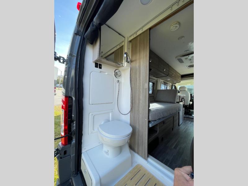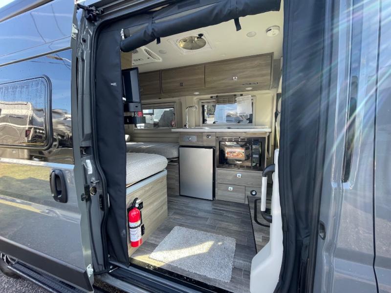 Each one of these Winnebago Travato Class B gas motorhomes are perfect for adventure seekers of all types! The rear annex extends your living space and gives you the versatility of hanging wet gear, using it as an outdoor shower, or an impromptu awning. They are powered by a Ram ProMaster 3.6L V6 gas engine with 280 HP and a 9-speed automatic transmission, and include a radio/rearview monitor system with navigation, USB ports, and more to make the drive easier than ever. The superior craftsmanship consists of a Truma Combi Eco Plus heating system that can run off of propane or electricity, aluminum running boards with logoed tread, ground-effect lighting and pet loop attachment so even your furry friends can come along. You will also find RAM Tough-Track Mounts throughout for your gear, tinted coach windows and blackout cassette shades for added privacy, plus a 24" HDTV and Bluetooth soundbar to ensure you'll never go bored!