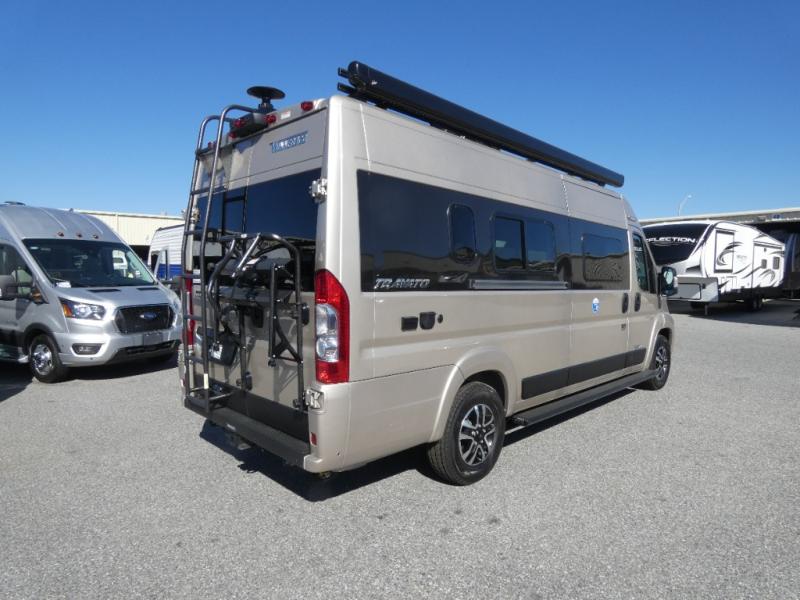 Each one of these Winnebago Travato Class B gas motorhomes are perfect for adventure seekers of all types! The rear annex extends your living space and gives you the versatility of hanging wet gear, using it as an outdoor shower, or an impromptu awning. They are powered by a Ram ProMaster 3.6L V6 gas engine with 280 HP and a 9-speed automatic transmission, and include a radio/rearview monitor system with navigation, USB ports, and more to make the drive easier than ever. The superior craftsmanship consists of a Truma Combi Eco Plus heating system that can run off of propane or electricity, aluminum running boards with logoed tread, ground-effect lighting and pet loop attachment so even your furry friends can come along. You will also find RAM Tough-Track Mounts throughout for your gear, tinted coach windows and blackout cassette shades for added privacy, plus a 24" HDTV and Bluetooth soundbar to ensure you'll never go bored!