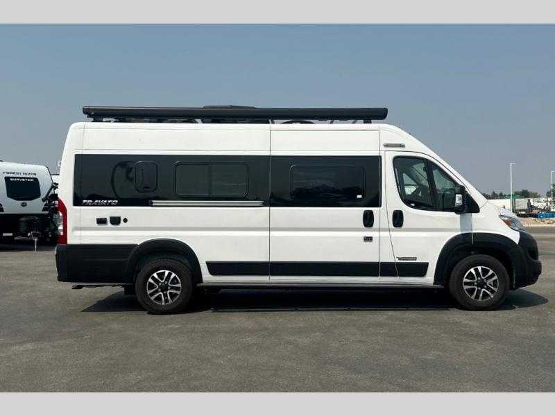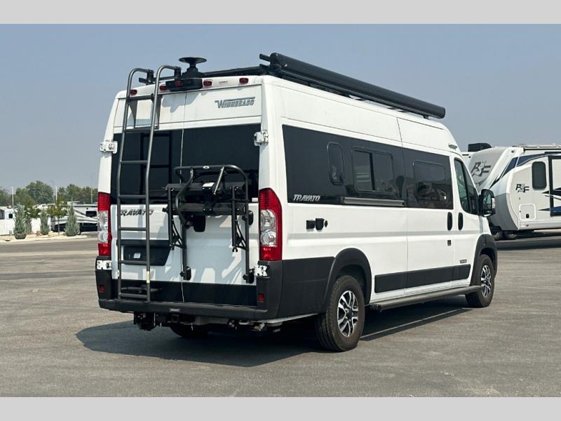 Each one of these Winnebago Travato Class B gas motorhomes are perfect for adventure seekers of all types! The rear annex extends your living space and gives you the versatility of hanging wet gear, using it as an outdoor shower, or an impromptu awning. They are powered by a Ram ProMaster 3.6L V6 gas engine with 280 HP and a 9-speed automatic transmission, and include a radio/rearview monitor system with navigation, USB ports, and more to make the drive easier than ever. The superior craftsmanship consists of a Truma Combi Eco Plus heating system that can run off of propane or electricity, aluminum running boards with logoed tread, ground-effect lighting and pet loop attachment so even your furry friends can come along. You will also find RAM Tough-Track Mounts throughout for your gear, tinted coach windows and blackout cassette shades for added privacy, plus a 24" HDTV and Bluetooth soundbar to ensure you'll never go bored!