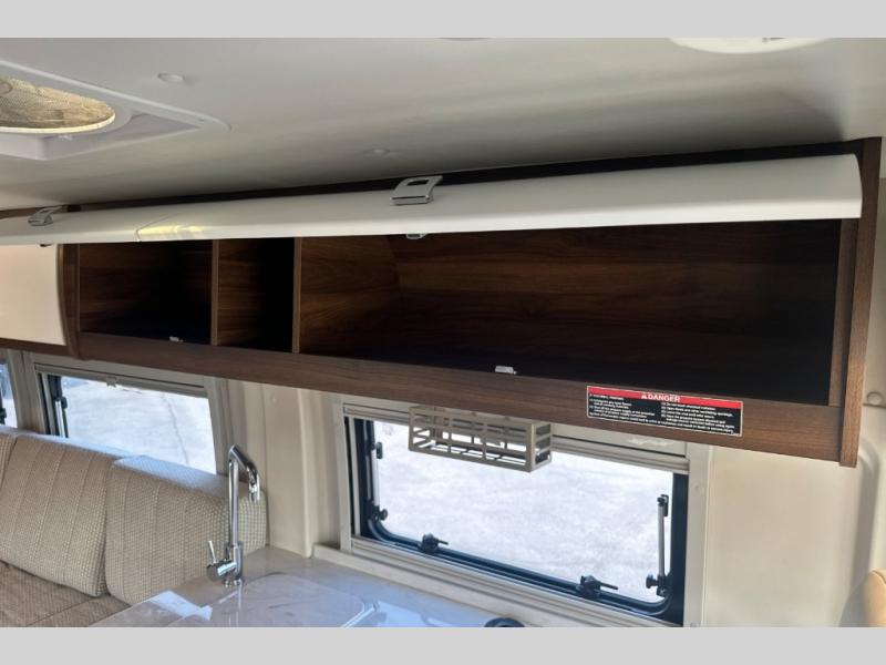 Don't pass up your chance to travel in true luxury with this motorhome! After a long day of traveling, you can rest up on one of the two twin beds which can be converted into a 74" x 76" bed with the flex bed system. Freshen up in the rear 25" x 43" wet bath with a fold down lavatory sink and a wardrobe to store your clothes and towels, plus sliding doors for privacy. You don't have to eat fast food while on the road either thanks to the single burner induction cooktop and single door 4.3 cu. ft. compressor-driven refrigerator/freezer, plus you have a flip-up countertop extension to make your meal prepping easier. The adjustable/removable table and mount makes it easy to eat your meals in different areas of the motorhome too. This model also comes with the Pure3 energy management system which has a 3-module lithium-ion energy pack, 3,200 watt inverter, a Bluetooth control module, an energy pack heating system, and a second dedicated alternator powered by the chassis engine!