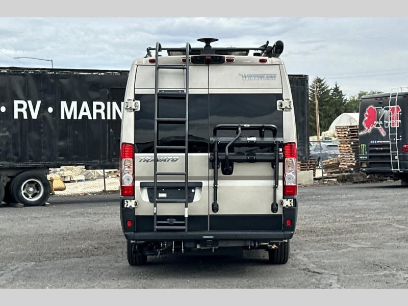 Each one of these Winnebago Travato Class B gas motorhomes are perfect for adventure seekers of all types! The rear annex extends your living space and gives you the versatility of hanging wet gear, using it as an outdoor shower, or an impromptu awning. They are powered by a Ram ProMaster 3.6L V6 gas engine with 280 HP and a 9-speed automatic transmission, and include a radio/rearview monitor system with navigation, USB ports, and more to make the drive easier than ever. The superior craftsmanship consists of a Truma Combi Eco Plus heating system that can run off of propane or electricity, aluminum running boards with logoed tread, ground-effect lighting and pet loop attachment so even your furry friends can come along. You will also find RAM Tough-Track Mounts throughout for your gear, tinted coach windows and blackout cassette shades for added privacy, plus a 24" HDTV and Bluetooth soundbar to ensure you'll never go bored!