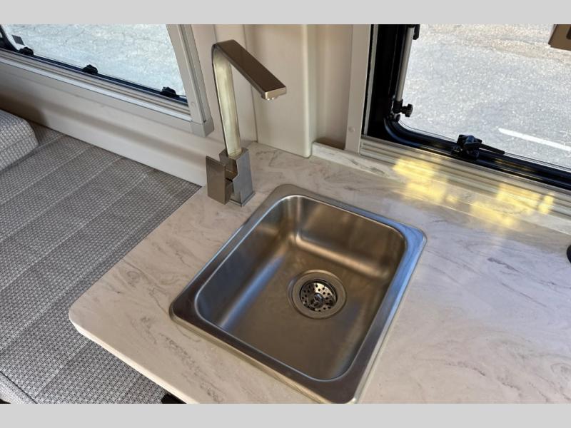 Don't pass up your chance to travel in true luxury with this motorhome! After a long day of traveling, you can rest up on one of the two twin beds which can be converted into a 74" x 76" bed with the flex bed system. Freshen up in the rear 25" x 43" wet bath with a fold down lavatory sink and a wardrobe to store your clothes and towels, plus sliding doors for privacy. You don't have to eat fast food while on the road either thanks to the single burner induction cooktop and single door 4.3 cu. ft. compressor-driven refrigerator/freezer, plus you have a flip-up countertop extension to make your meal prepping easier. The adjustable/removable table and mount makes it easy to eat your meals in different areas of the motorhome too. This model also comes with the Pure3 energy management system which has a 3-module lithium-ion energy pack, 3,200 watt inverter, a Bluetooth control module, an energy pack heating system, and a second dedicated alternator powered by the chassis engine!