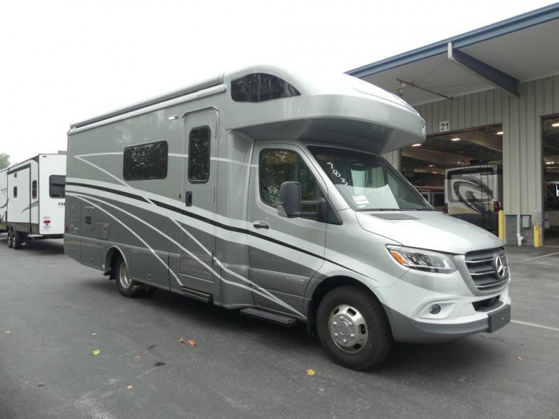 With each View Class C diesel motorhome by Winnebago, you can extend your trips off grid with the industry-leading holding tanks, the two 100W solar panels, two deep-cycle Group 31 RV batteries, 2,000W inverter, plus the 3,200W LP generator. The View is built on a Mercedes-Benz Sprinter chassis with advanced safety features giving you peace of mind, and the MBUX touchscreen infotainment system has intelligent voice control, navigation, a Wi-Fi hotspot, and more! The interior offers luxury space and simple solutions for storage, plus it also has vinyl flooring and laminate countertops for easy clean-up.