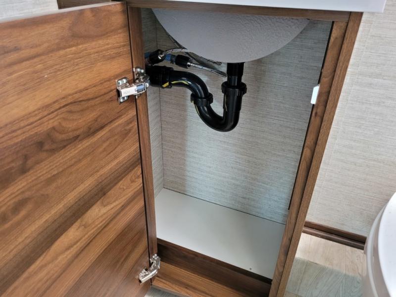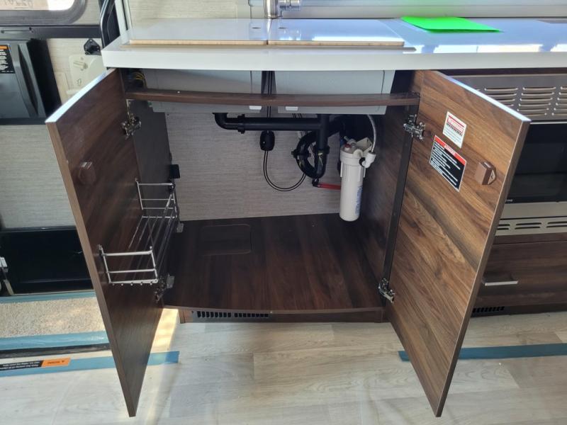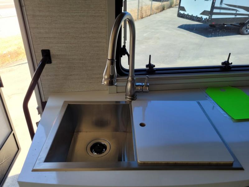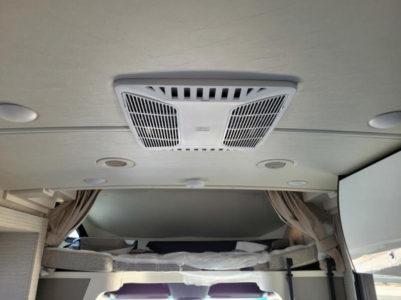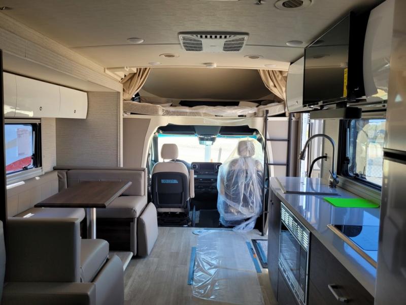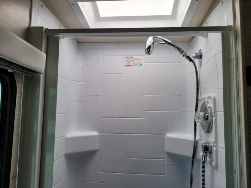 A couple or family will enjoy the look of the interior each time they take this View Class C diesel motorhome on the road. You will be able to easily set up the queen Murphy+ bed when it's time for bedtime while the kids sleep on the bunk above the cab or the U-shaped dinette. You might like to add the theater seating option with swivel tables if you don't need that extra sleeping space. Everyone can get cleaned up in the full rear bathroom that has a space-saving sliding door before making meals with full kitchen amenities including a convection microwave/oven.
