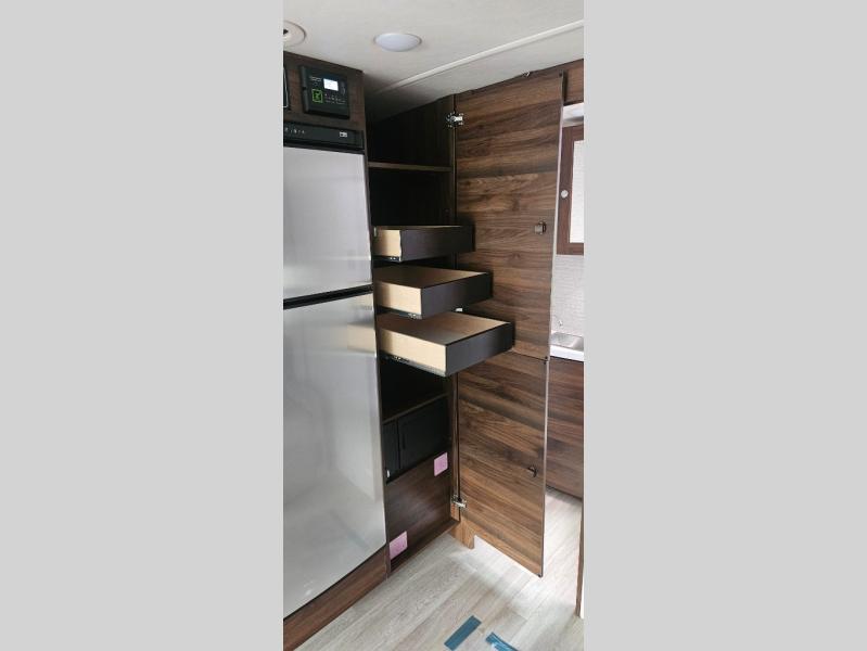 A couple or family will enjoy the look of the interior each time they take this View Class C diesel motorhome on the road. With the curved cabinets, the lighted soft-close galley drawers, and the sprung-cushion dinette and sofa seats, there will surely be a favorite feature for everyone. You will be able to easily set up the queen Murphy+ bed when it's time for bedtime while the kids sleep on the bunk above the cab or the U-shaped dinette. You might like to add the theater seating option with swivel tables if you don't need that extra sleeping space. Everyone can get cleaned up in the full rear bathroom that has a space-saving sliding door before making meals with full kitchen amenities including a convection microwave/oven.