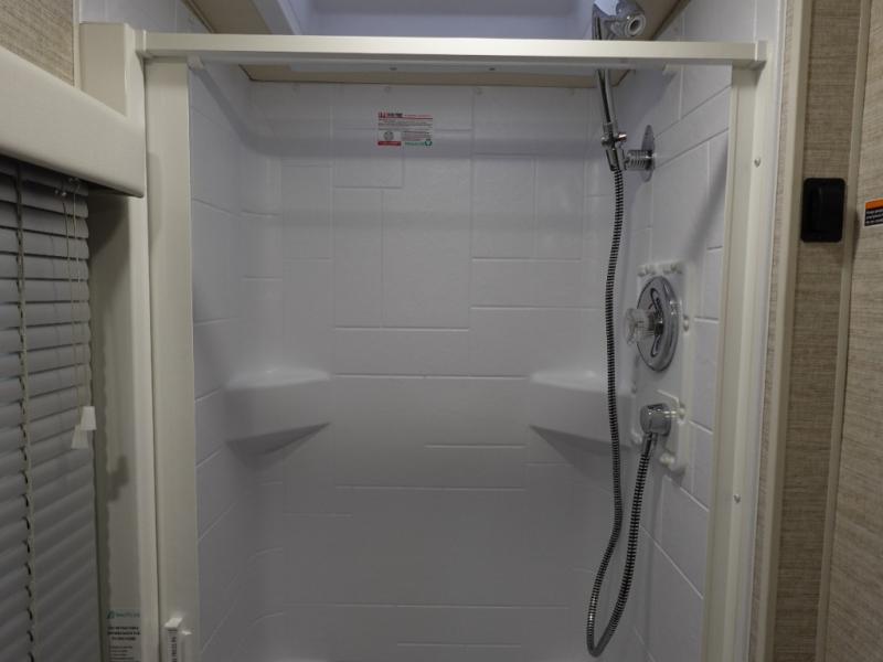 A couple or family will enjoy the look of the interior each time they take this View Class C diesel motorhome on the road. You will be able to easily set up the queen Murphy+ bed when it's time for bedtime while the kids sleep on the bunk above the cab or the U-shaped dinette. Everyone can get cleaned up in the full rear bathroom that has a space-saving sliding door before making meals with full kitchen amenities including a convection microwave/oven.