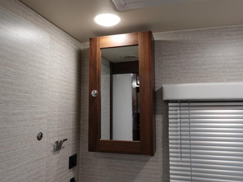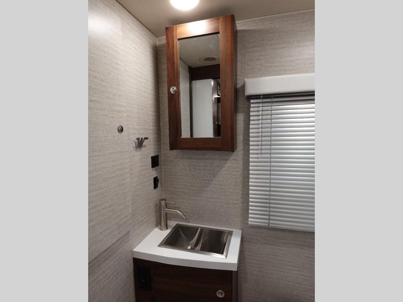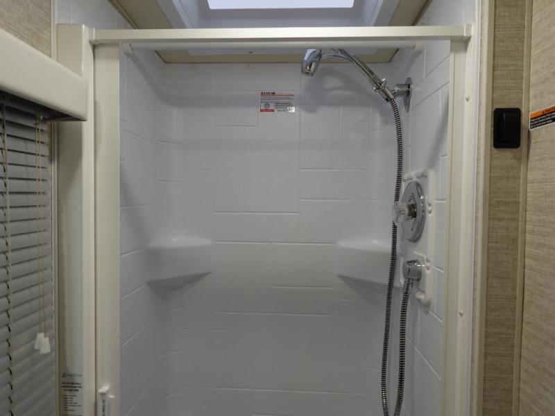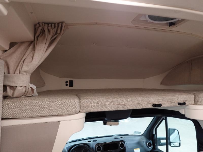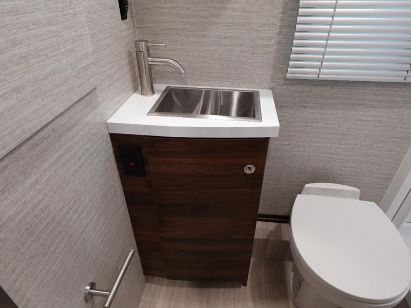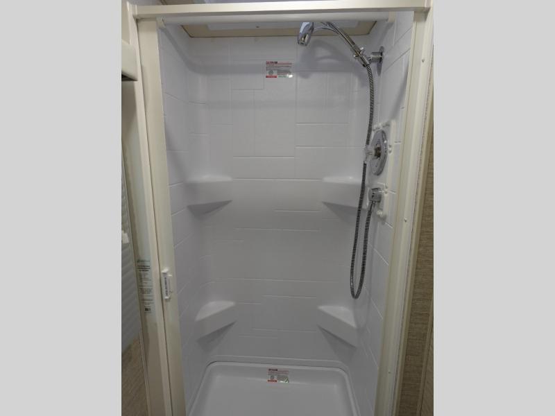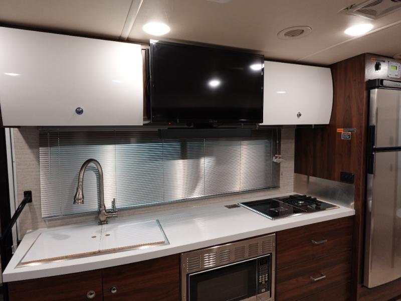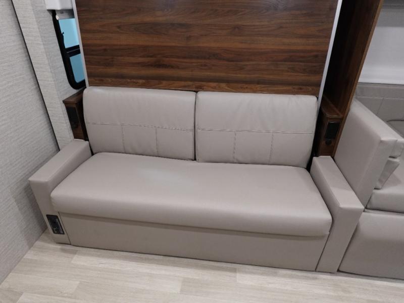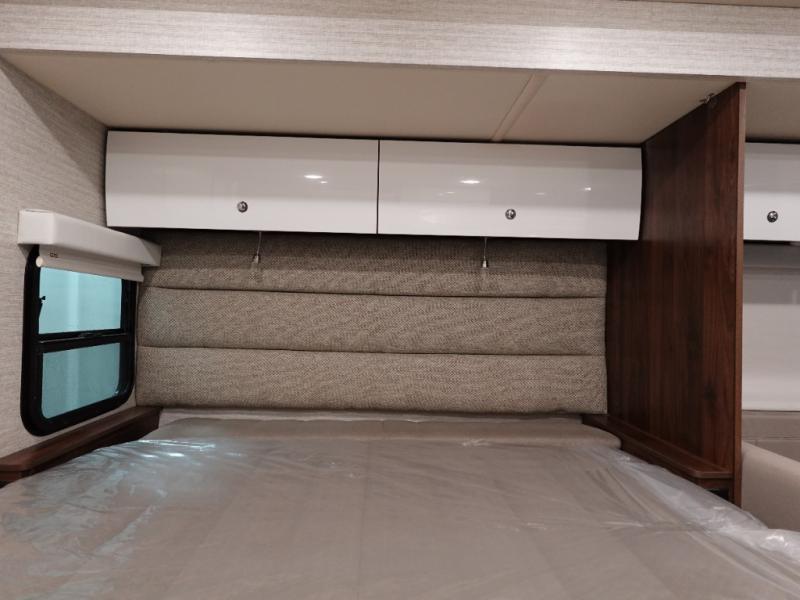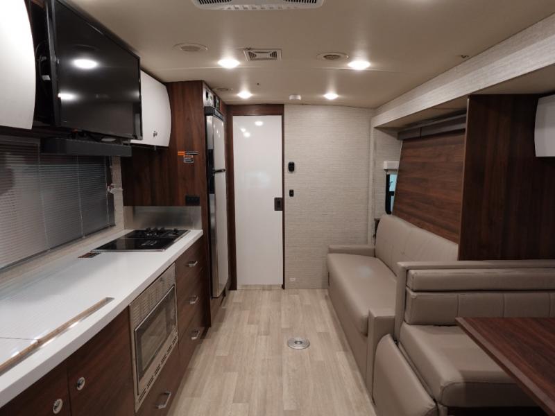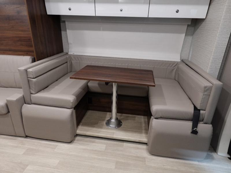 A couple or family will enjoy the look of the interior each time they take this View Class C diesel motorhome on the road. You will be able to easily set up the queen Murphy+ bed when it's time for bedtime while the kids sleep on the bunk above the cab or the U-shaped dinette. Everyone can get cleaned up in the full rear bathroom that has a space-saving sliding door before making meals with full kitchen amenities including a convection microwave/oven.
