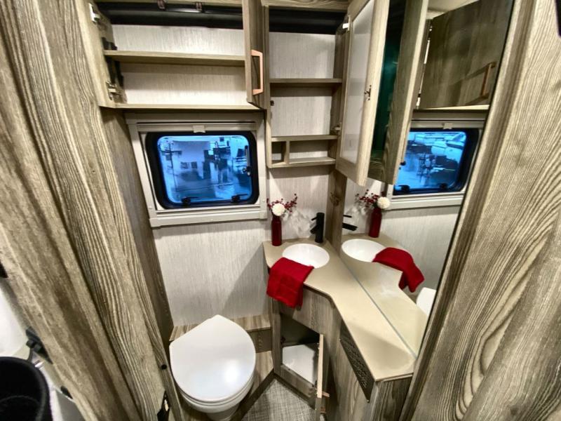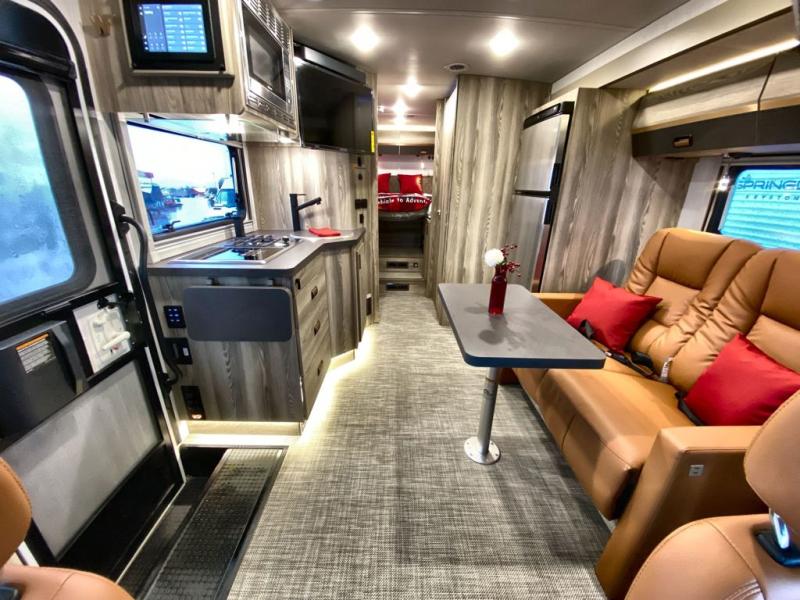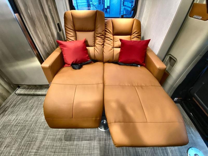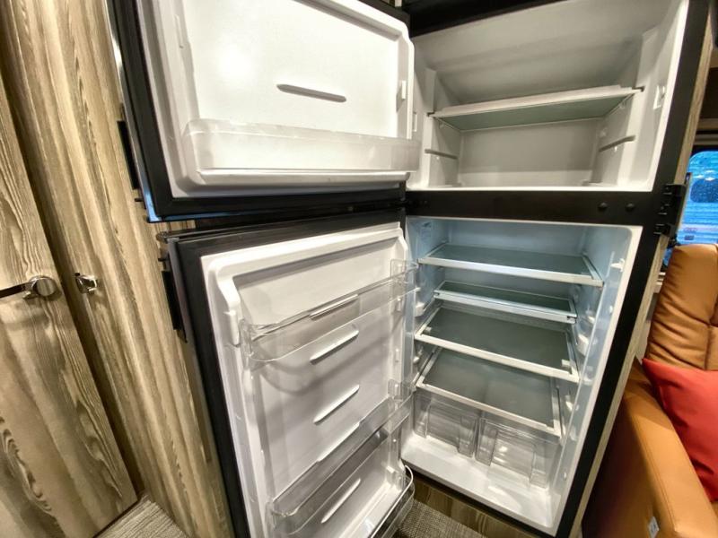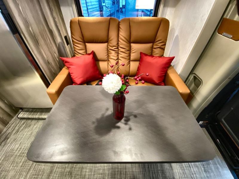 This is the perfect coach to travel with your honey or hiking buddy since there are two 32" x 76" twin beds in the back that can convert to a king-size bed if you choose! And the TrueComfort+ sofa with a movable pedestal table plus the cabover bunk will provide additional sleeping space. You can choose the optional low profile front cap with storage if you do not need the added sleeping space. An optional 3800W RVMP Flex Power generator is also available with this model. There is a 25" x 30" shower across the hall from a private toilet and sink so two people can freshen up at once. You will also be able to create meals each day since there is a two burner cooktop and convection microwave, and the 12V refrigerator will keep cold items fresh!