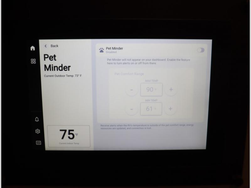Winnebago Connect keeps a close eye on all vehicle systems, so you can stay focused on the adventure. It even helps you stay aware of climate when you’re away with pets in the RV to notify you as needed for power loss, automatic climate control, smart messaging on systems status, weather, and GPS location services.