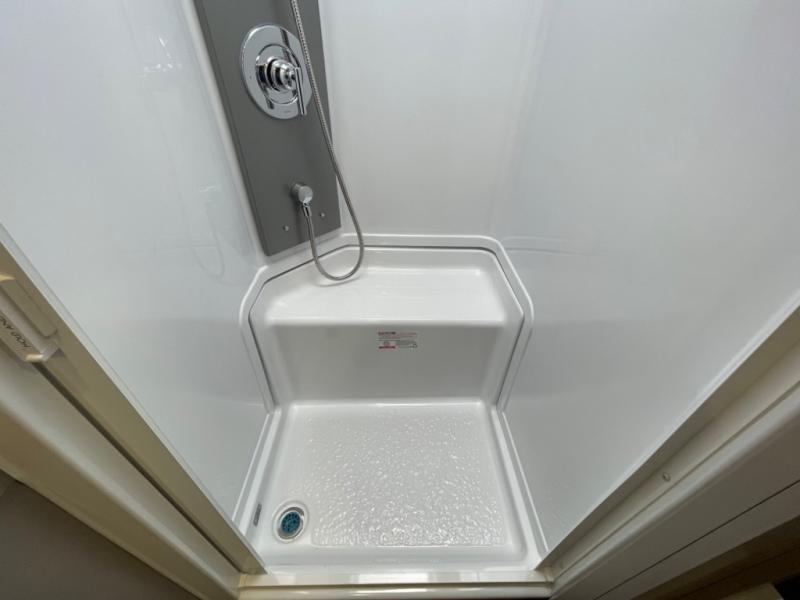 The perfect couples coach or for a family of three or four! You will be able to easily set up the queen Murphy+ bed when it's time for bedtime while the kids or your guests sleep on the 49" x 75" cabover bunk. You can also choose the optional low profile front cap with storage if you do not need the added sleeping space. An optional 3800W RVMP Flex Power generator is also available with this model. Everyone can get cleaned up in the full bathroom that has a space-saving sliding door and large wardrobe along the very rear that features a gear garage below. Create yummy meals and snacks using the kitchen appliances and the flip-up counter, then dine at the fold-down table with chairs, or eat seated on the theater seating with lap tables nearby on either side.