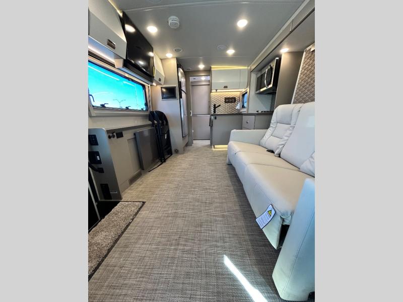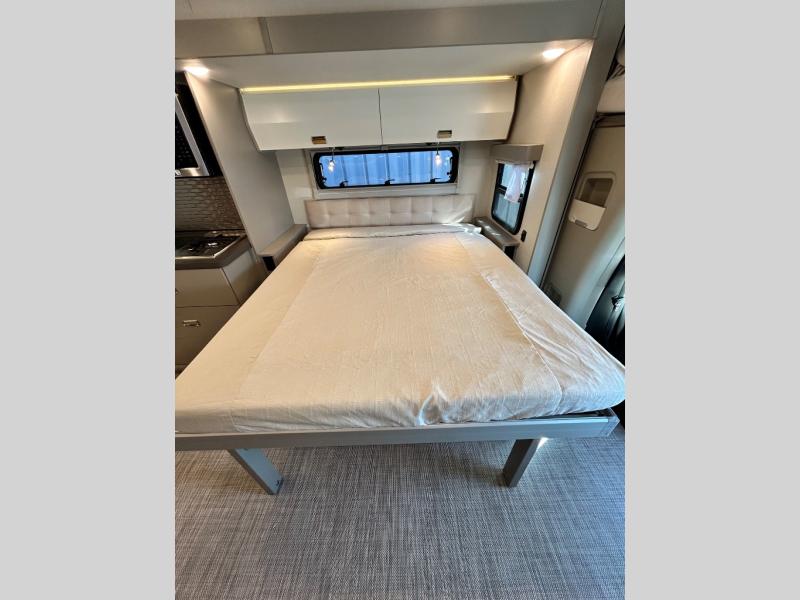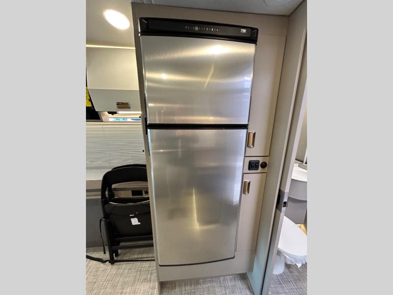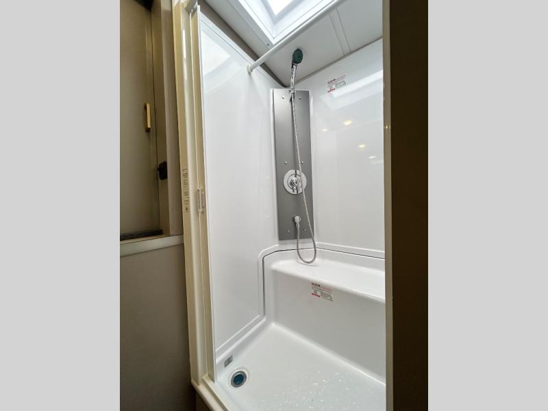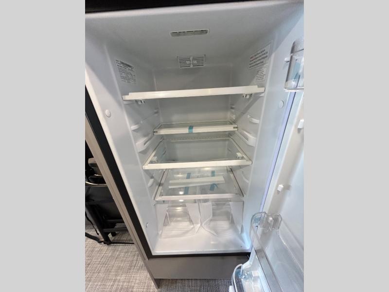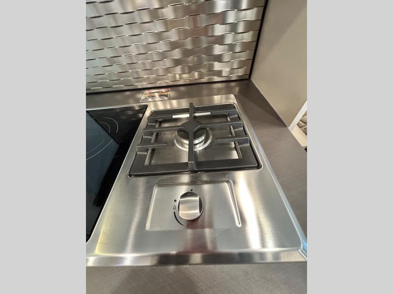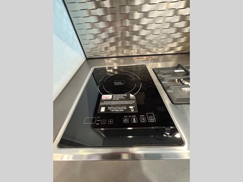 Step inside and you'll be greeted by modern European styling, soft-close cabinetry, and a light-filled interior with panoramic windows. The thoughtfully designed floorplan features a cozy U-shaped dinette, twin beds that convert to a spacious king, and an impressive galley with a convection microwave, induction cooktop, and abundant storage. The large full bath includes a shower skylight and high-end fixtures, making you feel right at home wherever you roam.