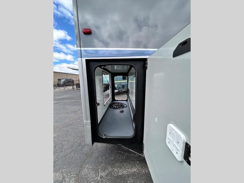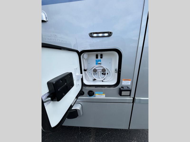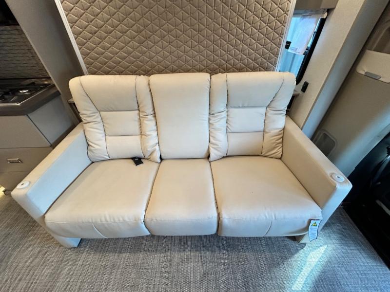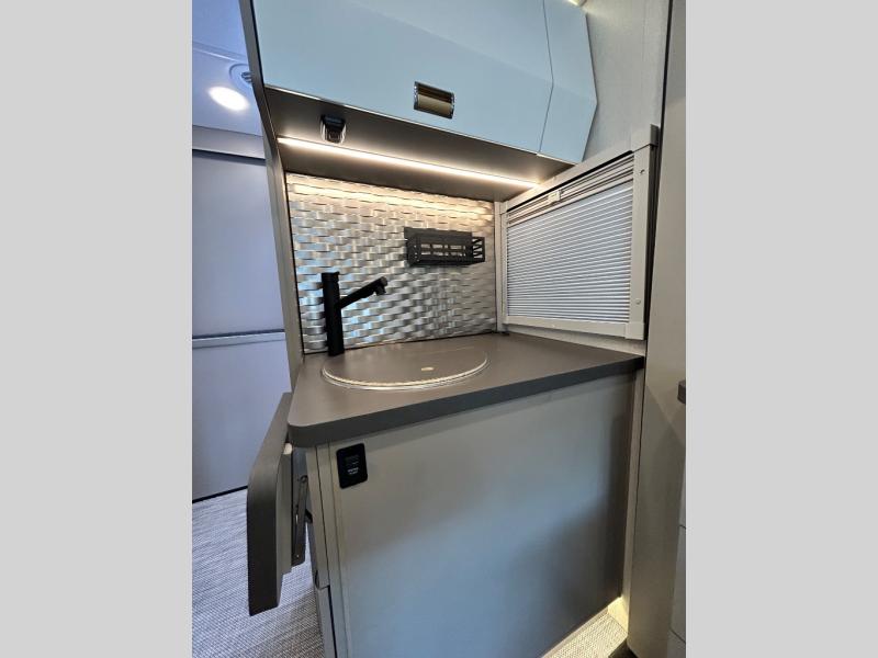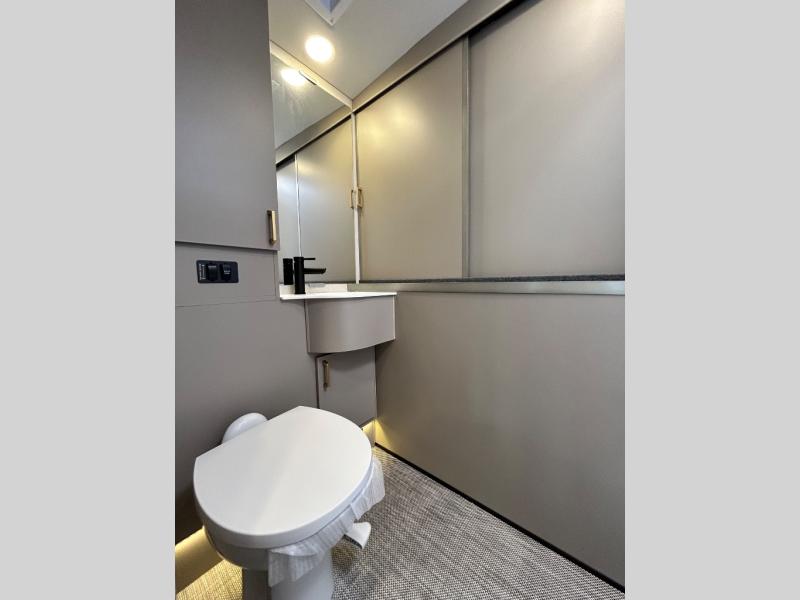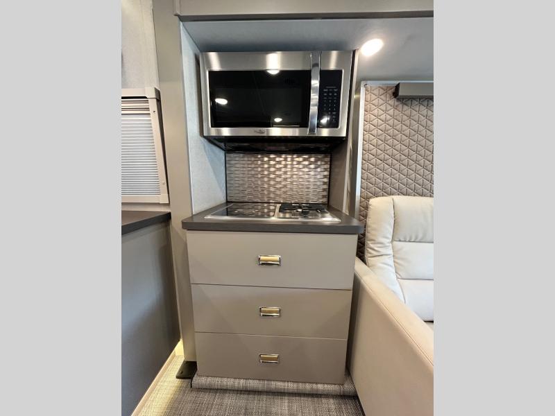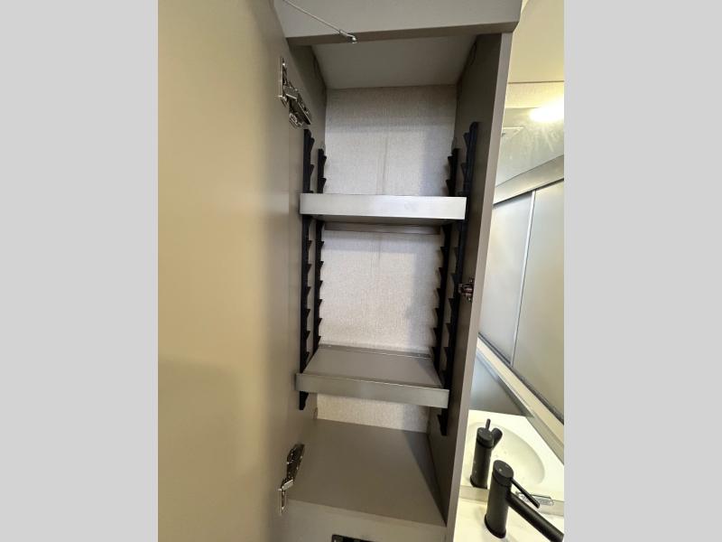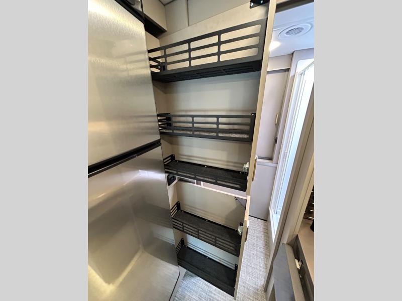 Step inside and you'll be greeted by modern European styling, soft-close cabinetry, and a light-filled interior with panoramic windows. The thoughtfully designed floorplan features a cozy U-shaped dinette, twin beds that convert to a spacious king, and an impressive galley with a convection microwave, induction cooktop, and abundant storage. The large full bath includes a shower skylight and high-end fixtures, making you feel right at home wherever you roam.