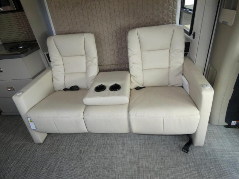 The Winnebago View 24T Class C diesel motorhome is functional, innovative, and stylish! A Lithium Power Package comes with a 320-amp-hour lithium battery and a dedicated second alternator that will allow you to charge the batteries faster while you're on the road. There are also two 120-watt solar panels to keep you going when you're off-grid. Since there is a heated gear garage with L-track cargo tie-downs, you can bring along two full-size bikes and additional gear for hiking, plus there are 110V/12V charging ports and LED lighting here for added convenience. The contemporary interior features blackout roller shades for the lounge and dining area, woven vinyl flooring throughout, and dimmable LED lighting. There is also a Winnebago Connect that is integrated into your Winnebago app that acts as your RV companion. Now you can stay informed on vehicle system alerts, travel prep resources, energy management, and more!