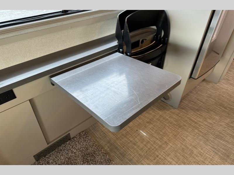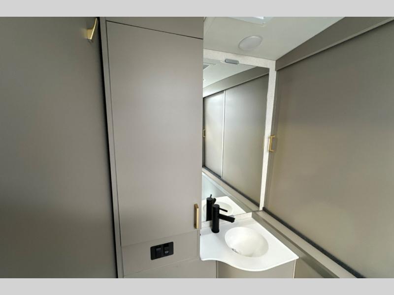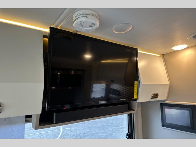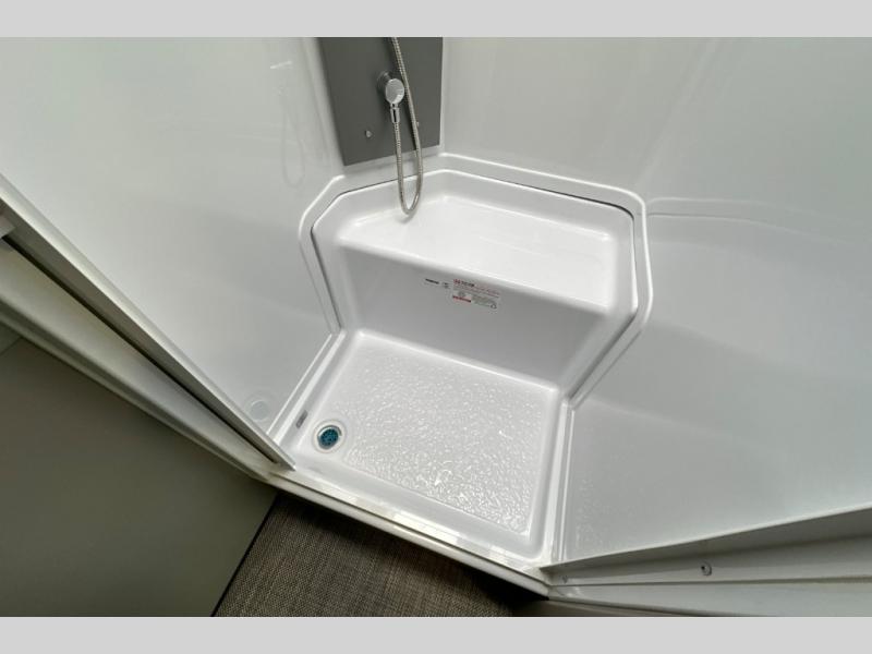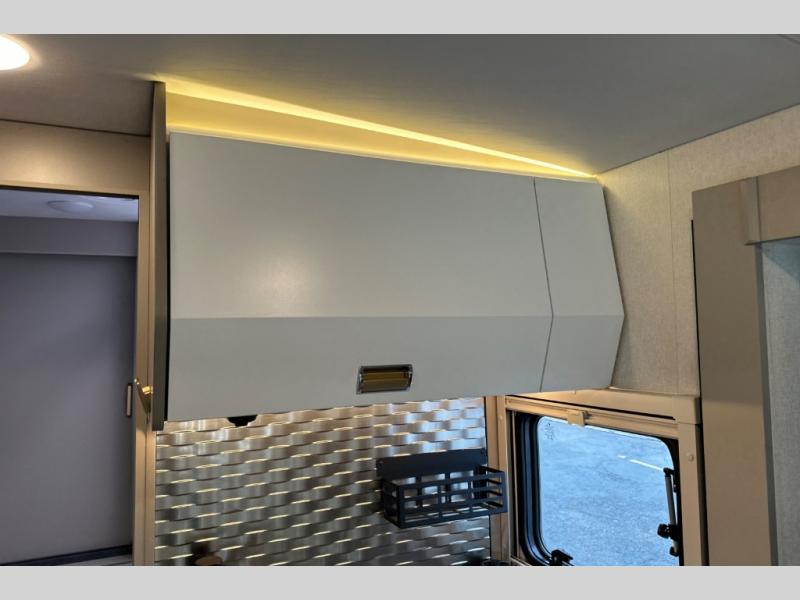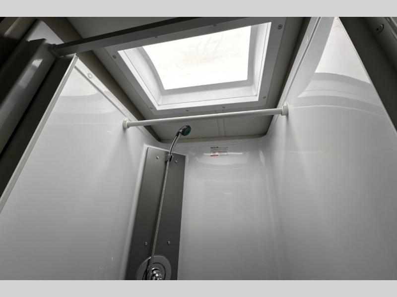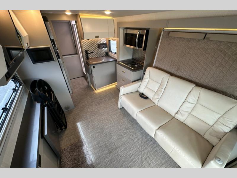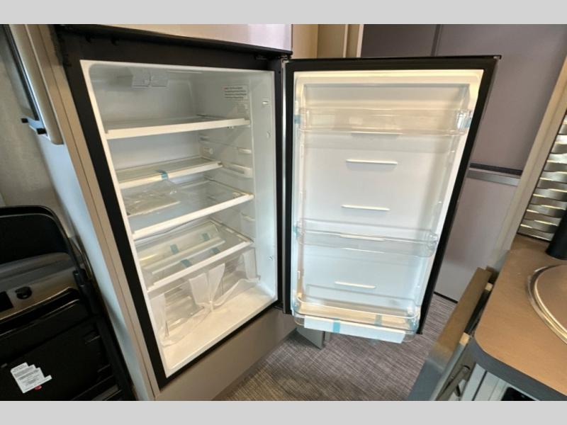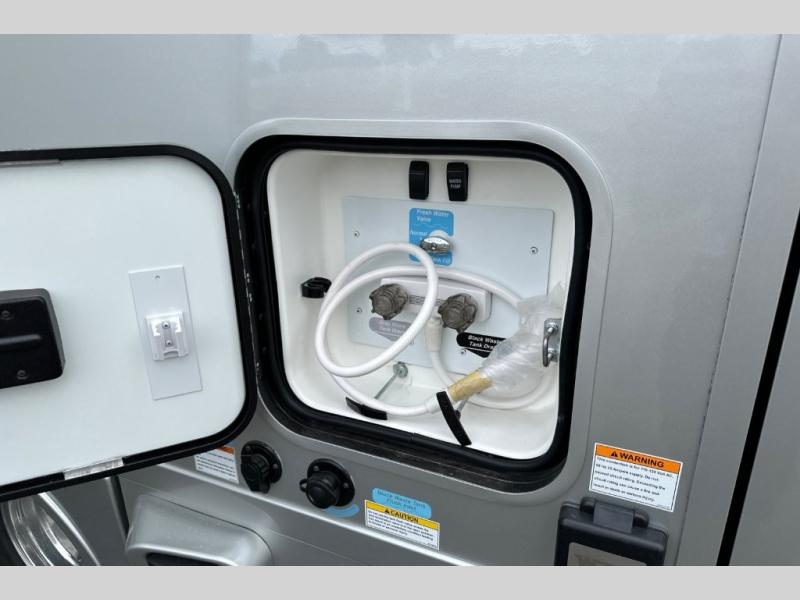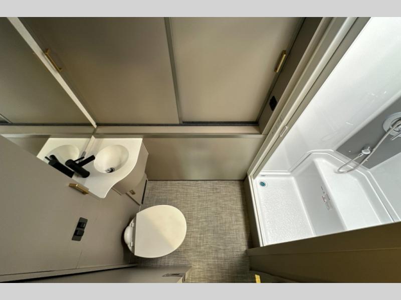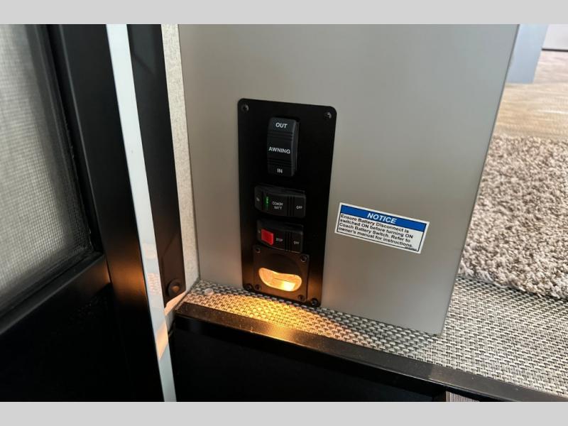 The perfect couples coach or for a family of three or four! You will be able to easily set up the queen Murphy+ bed when it's time for bedtime while the kids or your guests sleep on the 49" x 75" cabover bunk. You can also choose the optional low profile front cap with storage if you do not need the added sleeping space. An optional 3800W RVMP Flex Power generator is also available with this model. Everyone can get cleaned up in the full bathroom that has a space-saving sliding door and large wardrobe along the very rear that features a gear garage below. Create yummy meals and snacks using the kitchen appliances and the flip-up counter, then dine at the fold-down table with chairs, or eat seated on the theater seating with lap tables nearby on either side.