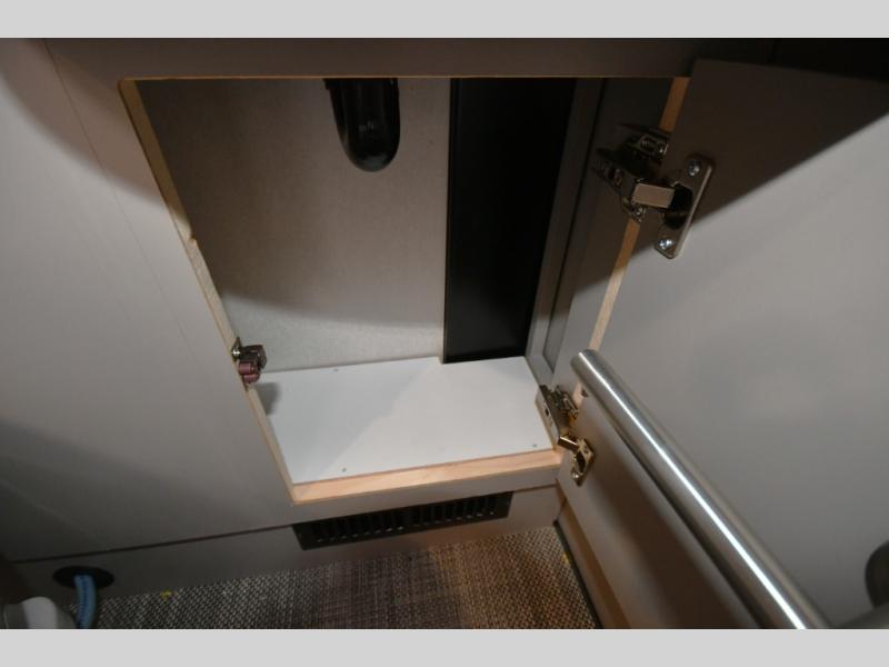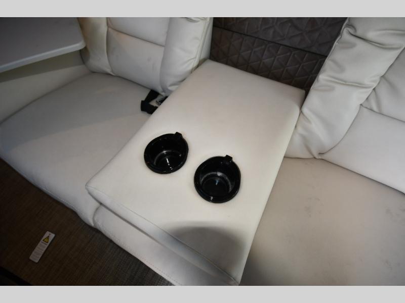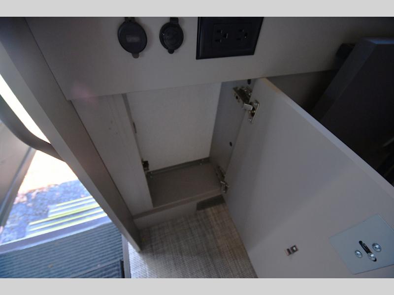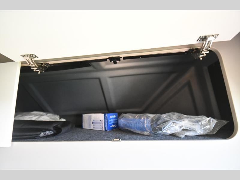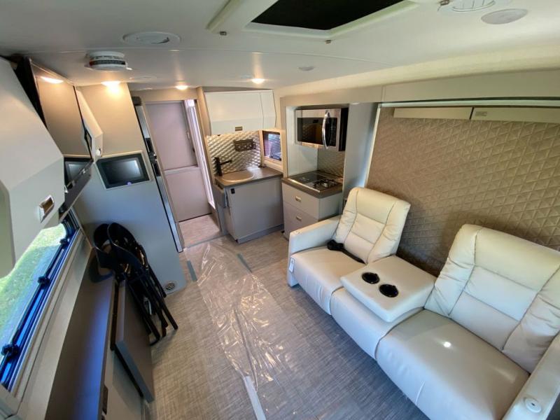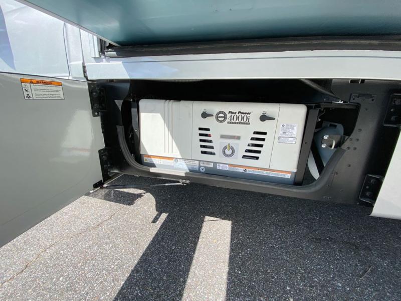 The perfect couples coach or for a family of three or four! You will be able to easily set up the queen Murphy+ bed when it's time for bedtime while the kids or your guests sleep on the 49" x 75" cabover bunk. You can also choose the optional low profile front cap with storage if you do not need the added sleeping space. An optional 3800W RVMP Flex Power generator is also available with this model. Everyone can get cleaned up in the full bathroom that has a space-saving sliding door and large wardrobe along the very rear that features a gear garage below. Create yummy meals and snacks using the kitchen appliances and the flip-up counter, then dine at the fold-down table with chairs, or eat seated on the theater seating with lap tables nearby on either side.