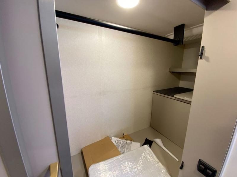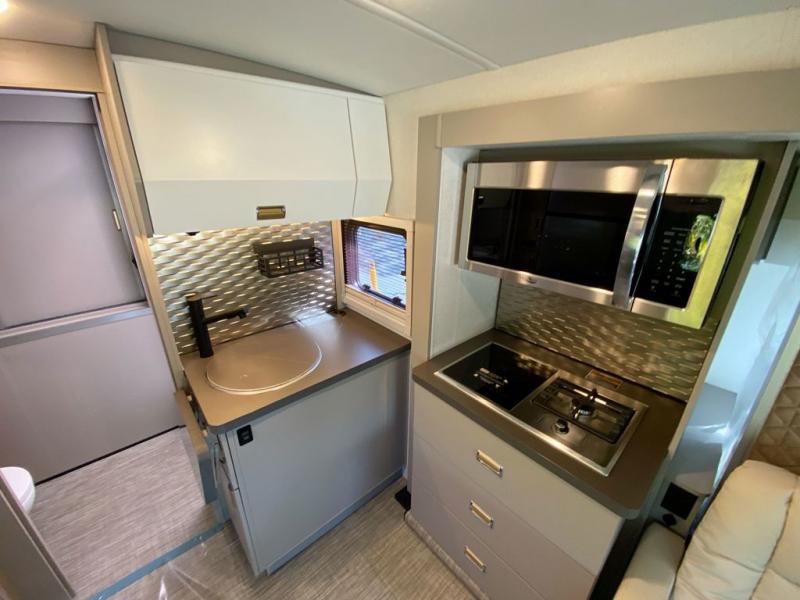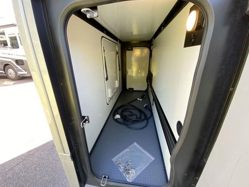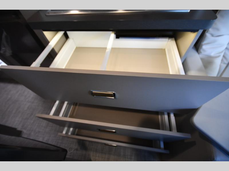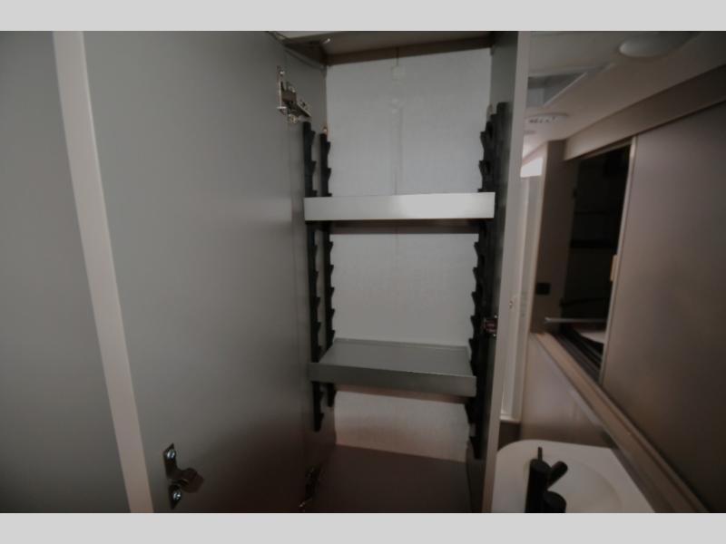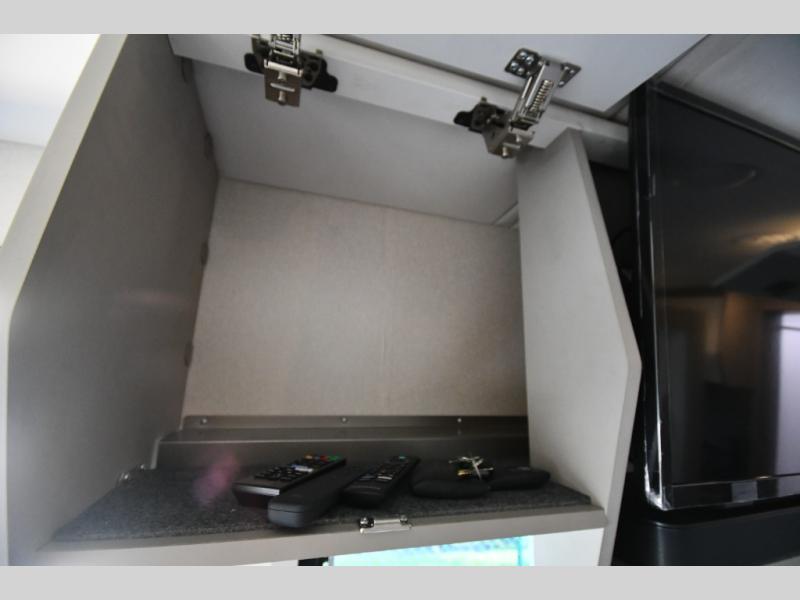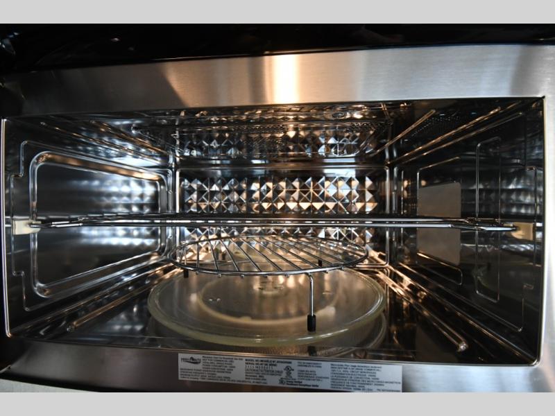 The perfect couples coach or for a family of three or four! You will be able to easily set up the queen Murphy+ bed when it's time for bedtime while the kids or your guests sleep on the 49" x 75" cabover bunk. You can also choose the optional low profile front cap with storage if you do not need the added sleeping space. An optional 3800W RVMP Flex Power generator is also available with this model. Everyone can get cleaned up in the full bathroom that has a space-saving sliding door and large wardrobe along the very rear that features a gear garage below. Create yummy meals and snacks using the kitchen appliances and the flip-up counter, then dine at the fold-down table with chairs, or eat seated on the theater seating with lap tables nearby on either side.