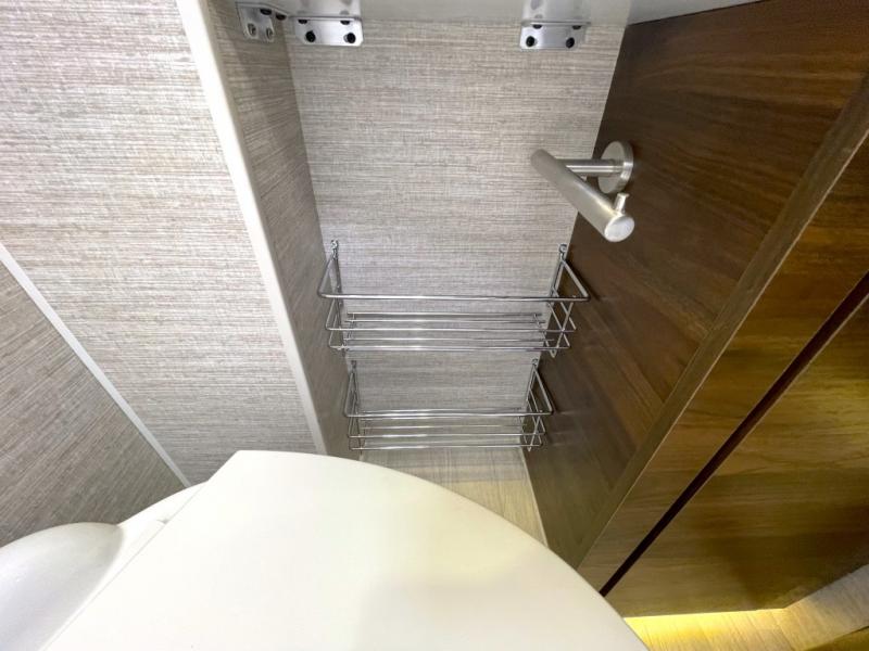 Gourmet Cooking Experience: The well-appointed kitchen features a convection microwave oven and an LP/induction cooktop. Enjoy cooking in style with curved cabinets and lighted soft-close galley drawers that add a touch of elegance.