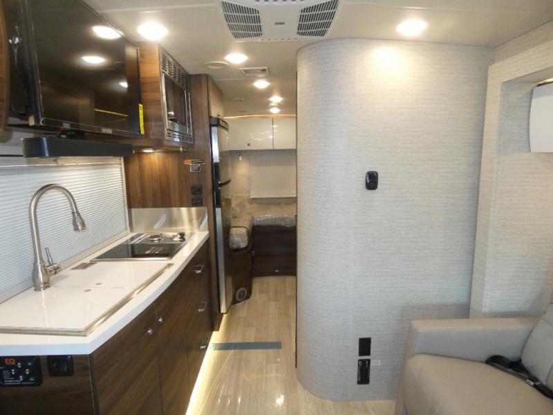 This versatile View Class C diesel motorhome gives you the ability to sleep in twin beds each with a wardrobe at the foot of the bed, or you might like to use the Flex Bed system to convert them into one 74" x 87" king bed. Other sleeping spaces include the bunk above the cab that the kids will love, and the TrueComfort+ sofa slide out which includes a table for dining, playing games, or maybe getting a little work done. The cook will have all the necessary appliances to make warm meals including a convection microwave oven and an LP/induction cooktop.