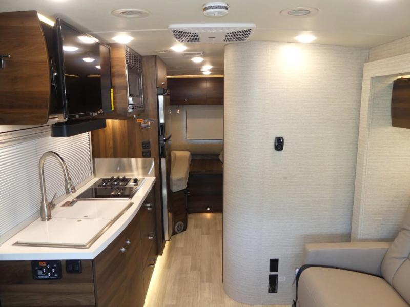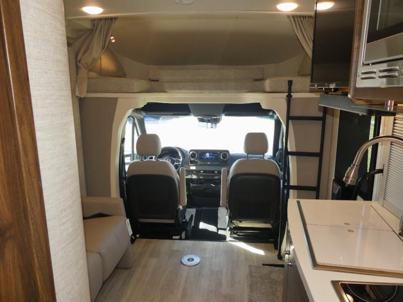 This versatile View Class C diesel motorhome gives you the ability to sleep in twin beds each with a wardrobe at the foot of the bed, or you might like to use the Flex Bed system to convert them into one 74" x 87" king bed. Other sleeping spaces include the bunk above the cab that the kids will love, and the sofa slide out which includes a table for dining, playing games, or maybe getting a little work done. You might even decide to add the optional seating with a table instead if you don't think you will need the extra sleeping space. The cook will have all the necessary appliances to make warm meals including a convection microwave oven and an LP/induction cooktop.