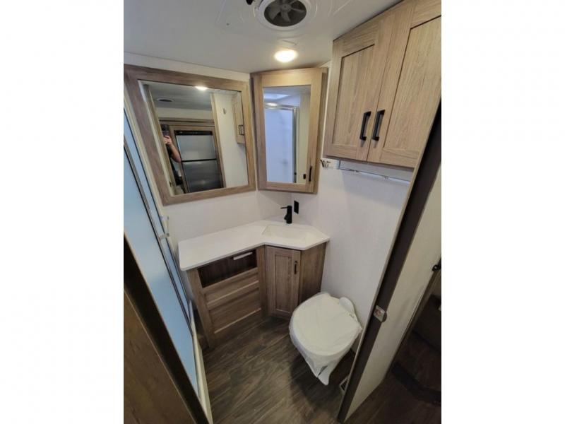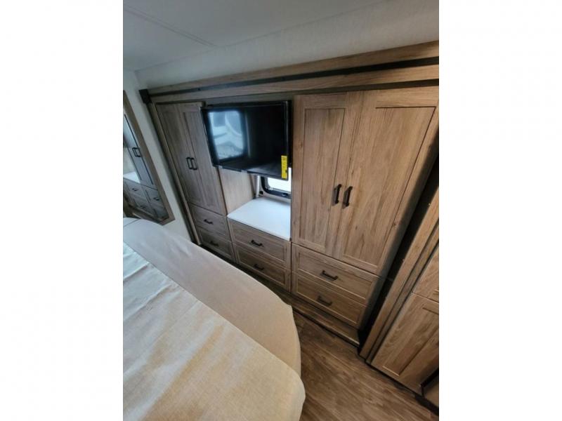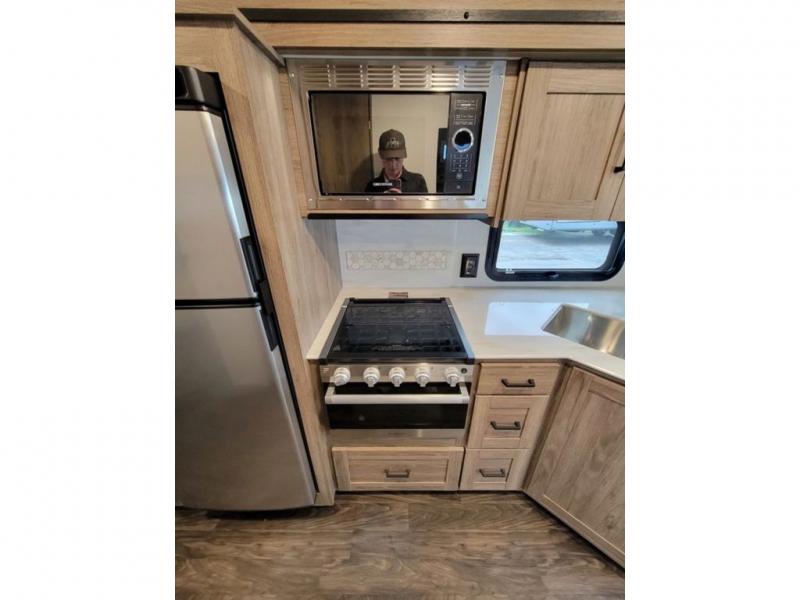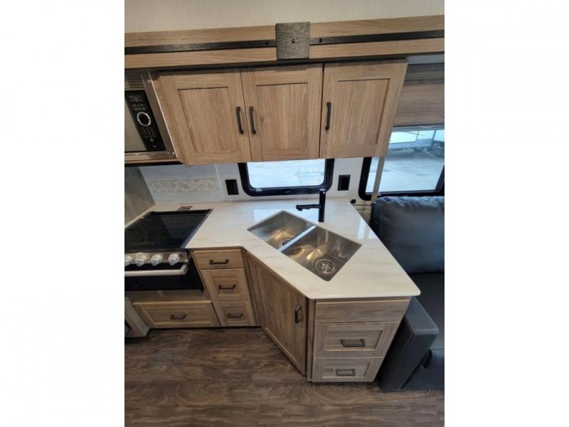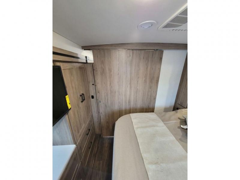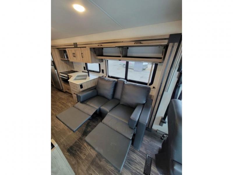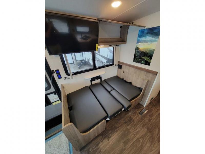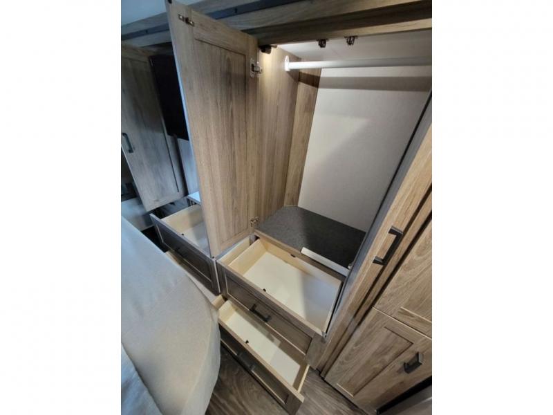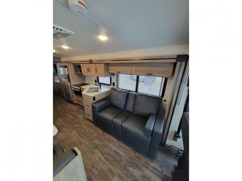 Head to your favorite destinations with this motorhome! You can travel with your spouse or bring an extra guest or two when you add the optional StudioLoft 50" x 80" powered bed above the cab. The 40" x 66" sofa bed can also transform into an extra sleeping space but if you don't need it then you can switch it out for the optional theater seating. Enjoy delicious home cooked meals while on the road with the three burner cooktop or head to the exterior kitchen to breathe in some fresh air while you cook. Eat your meals at the 42" x 70" dinette with Hi-Lo table and freshen up each morning in the full bathroom featuring a 26" x 38" shower. The rear private bedroom has a 72" x 75" king bed to lay your head on at night and wardrobes on either side of a storage area with a location for an optional TV to be added!