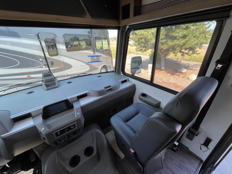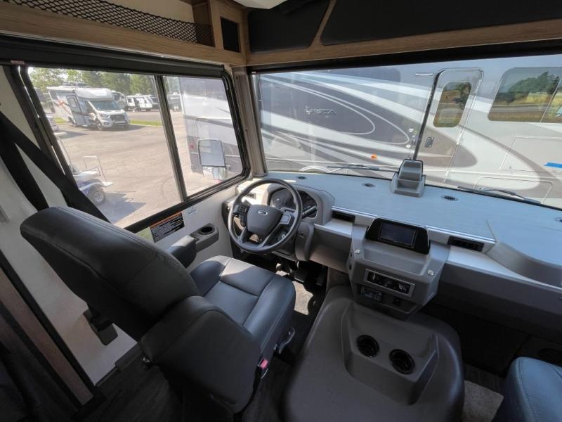 The Winnebago Vista Class A gas motorhome will expand your horizons and provide you a great traveling home on wheels! The Vista is powered by a 7.3L PFI V8 engine on a Ford F53 chassis with 5,000 lbs. of towing capacity which allows you to bring along one of your favorite toys. The adjustable swivel cab seats in front can slide and recline so you can be sure to have the perfect level of comfort in addition to entertainment with the 7" LCD color touch screen that is Sirius XM ready and Bluetooth compatible with Android Auto and Apple CarPlay. The powered blackout roller visor/shade on the front windshield provides extra privacy, and the passenger dash workstation with USB and 12-volt power port lets you get some work done while on the road.