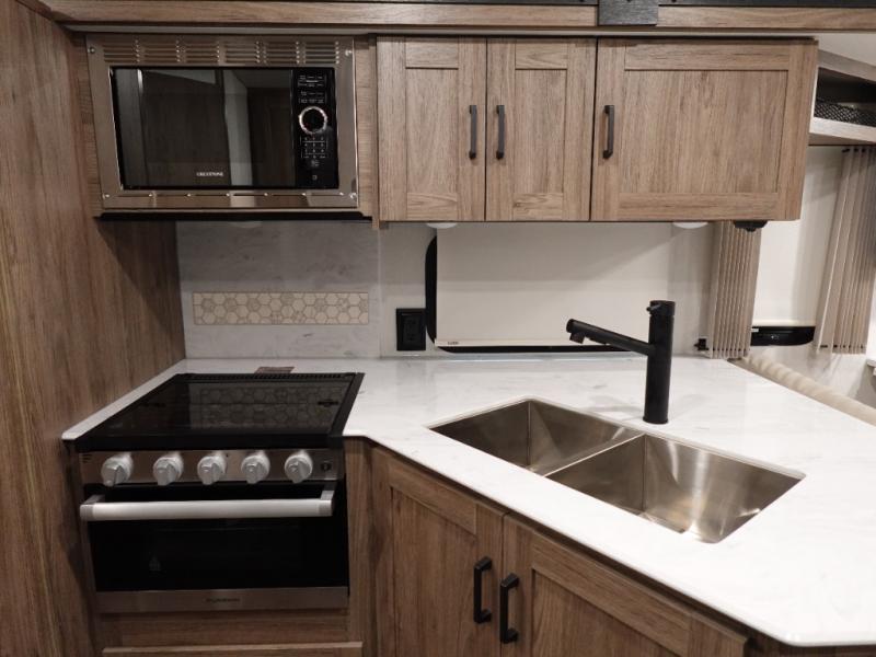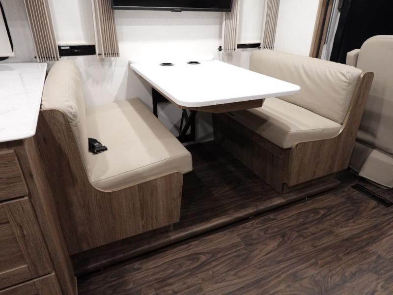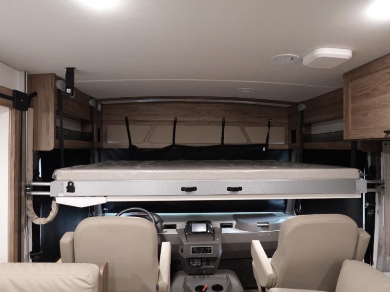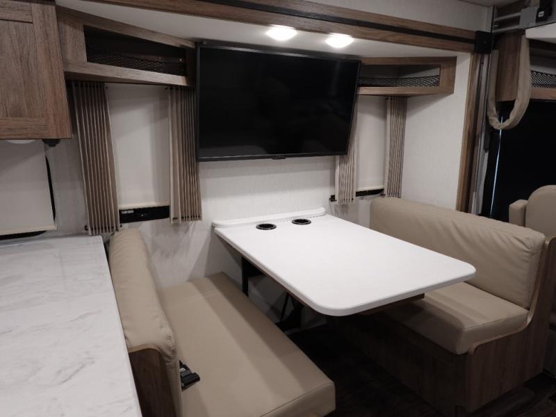 The Winnebago Vista Class A gas motorhome will expand your horizons and provide you a great traveling home on wheels! The Vista is powered by a 7.3L PFI V8 engine on a Ford F53 chassis with 5,000 lbs. of towing capacity which allows you to bring along one of your favorite toys. The adjustable swivel cab seats in front can slide and recline so you can be sure to have the perfect level of comfort in addition to entertainment with the 7" LCD color touch screen that is Sirius XM ready and Bluetooth compatible with Android Auto and Apple CarPlay. The powered blackout roller visor/shade on the front windshield provides extra privacy, and the passenger dash workstation with USB and 12-volt power port lets you get some work done while on the road.