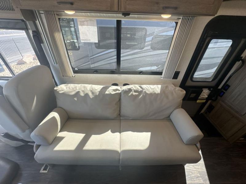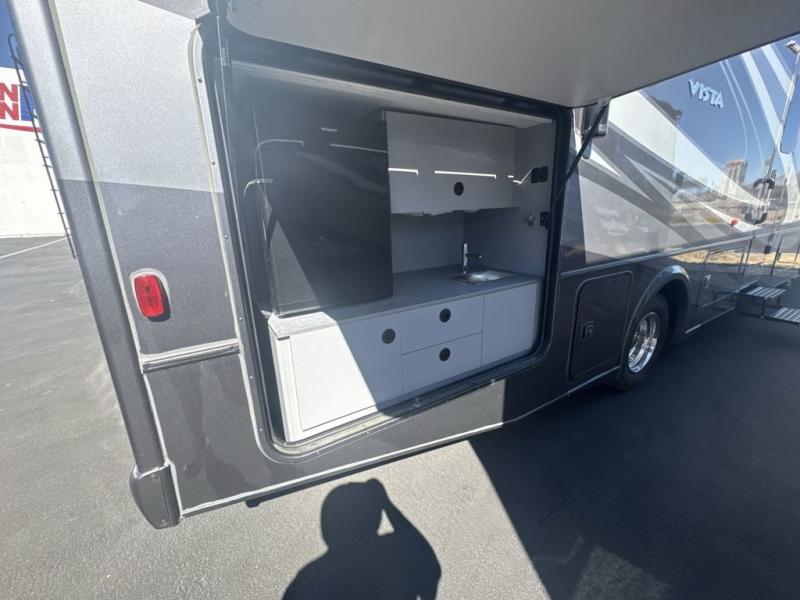 The Winnebago Vista Class A gas motorhome will expand your horizons and provide you a great traveling home on wheels! The Vista is powered by a 7.3L PFI V8 engine on a Ford F53 chassis with 5,000 lbs. of towing capacity which allows you to bring along one of your favorite toys. The adjustable swivel cab seats in front can slide and recline so you can be sure to have the perfect level of comfort in addition to entertainment with the 7" LCD color touch screen that is Sirius XM ready and Bluetooth compatible with Android Auto and Apple CarPlay. The powered blackout roller visor/shade on the front windshield provides extra privacy, and the passenger dash workstation with USB and 12-volt power port lets you get some work done while on the road.