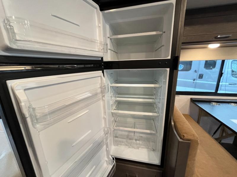 The New 2025 Winnebago Vita 24P combines comfort, convenience, and smart design into a travel coach that’s ready to go wherever your adventurous spirit leads. Visit Campers Inn RV to experience this exceptional motorhome in person and discover why it’s the perfect choice for your next adventure." x 87" that could sleep two children or an adult. You can easily cook all of your meals with a three burner cooktop, and convection microwave oven below. A refrigerator and pantry are located within the full-wall slide next to the dinette for all of your food storage needs. You can choose the optional theater seating with a pedestal table for two if you don't need as much space for dining or added sleeping. The rear corner bath opposite the 60" x 75" queen bed is a convenience that you will appreciate as you travel featuring a 24" x 32" shower, toilet, and corner sink with overhead storage. The bath features a sliding bi-fold door for privacy. This unit also features plenty of storage both inside and out with overhead cabinets, nightstands, wardrobe storage for your clothing, and an exterior storage door along the slide at the back of the refrigerator and pantry that is easily accessible, plus so much more!