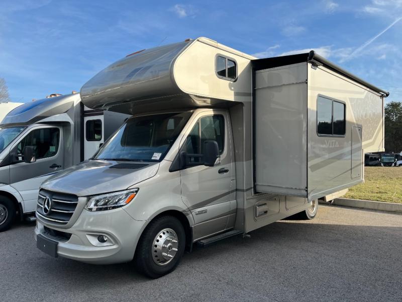 You will find new décor, enhanced amenities, and best-in-class features for a longer, more comfortable stay in one of these Winnebago Vita Class C diesel motorhomes! The powered patio awning will keep you protected rain or shine, and the ample exterior storage allows you to bring all of your essentials. They are powered by a 2.0L turbo diesel engine and the Mercedes-Benz Sprinter chassis will hold up for years to come. The MBUX multimedia infotainment center will keep you entertained on your road trips. Plus, the hydraulic leveling jacks come with automatic control through Bluetooth for an effortless set up!