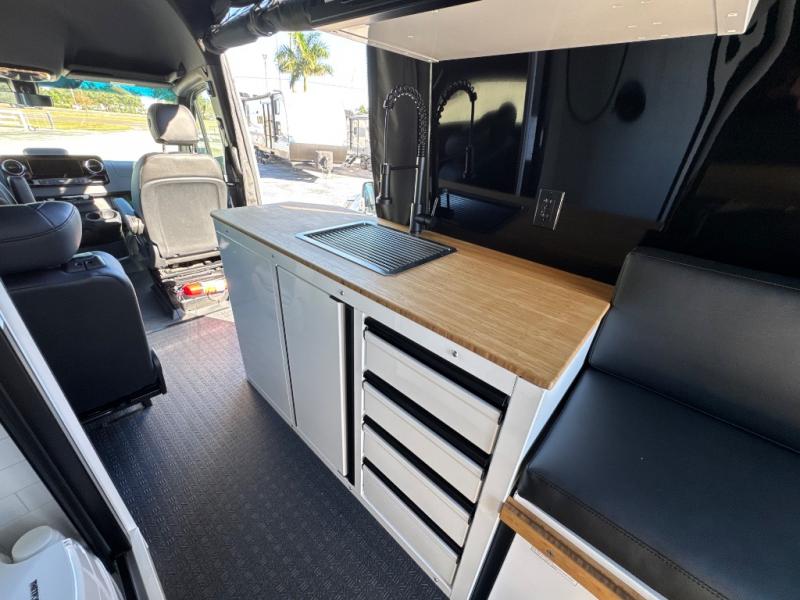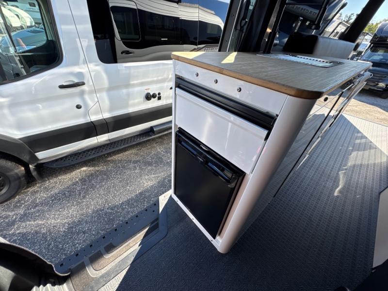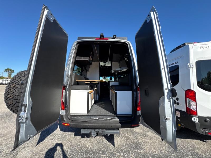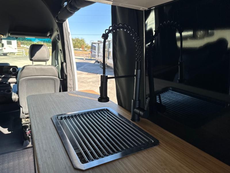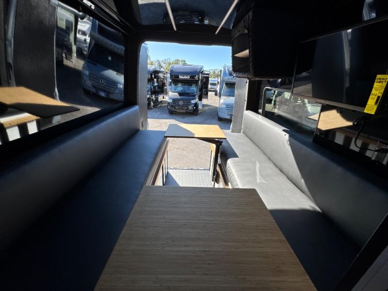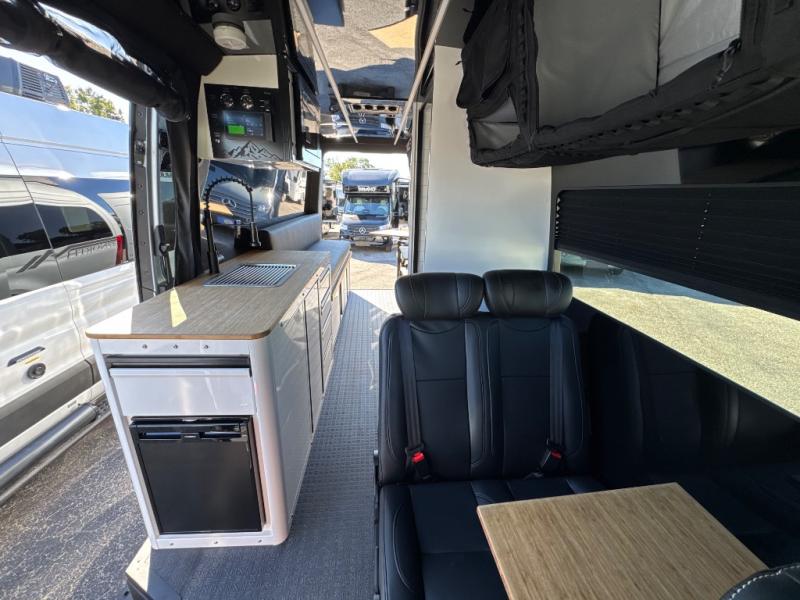 This van features a 170" wheelbase that is ready for adventure when you are! The 4x4 all-wheel drive means you can conquer tough terrain plus there is an automatic transmission. Inside, you'll find a pantry/wardrobe/storage, heavy duty aluminum racks to keep your gear tucked away, plus toe kick and under-cabinet LED lighting. The leather dinette converts to a bed/sleeping area where you can dine each day and sleep soundly. In the morning, you can prepare breakfast on the dual burner induction cooktop or in the microwave oven, plus there is an Isotherm drawer refrigerator/freezer for your perishables.