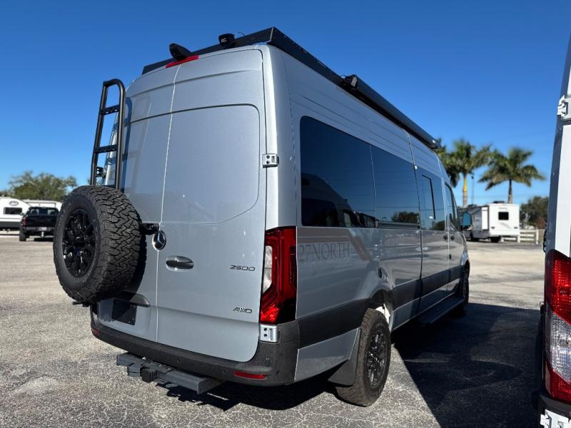 The 27North Adventure Vans are innovative, luxurious, and packed with convenient features to make each journey enjoyable! You will appreciate the quality construction and attention to detail on each model, along with a Mercedes-Benz Sprinter 4x4 chassis for a durable foundation. The Agile Offroad Ride Improvement Package and automatic transmission will make the drive easier than ever, plus there is solar power to provide off-grid capabilities. There are comfortable sleeping spaces, kitchen amenities that will allow you to cook meals while you're on the road, plus generous storage spaces for your belongings and camp gear. An indoor/outdoor speaker system will let you listen to your favorite tunes as you travel, and the 10' powered awning will provide some much needed shade when you're relaxing outdoors.