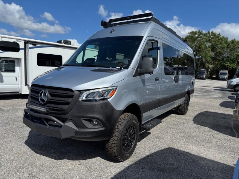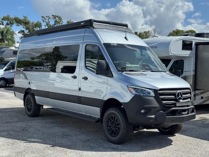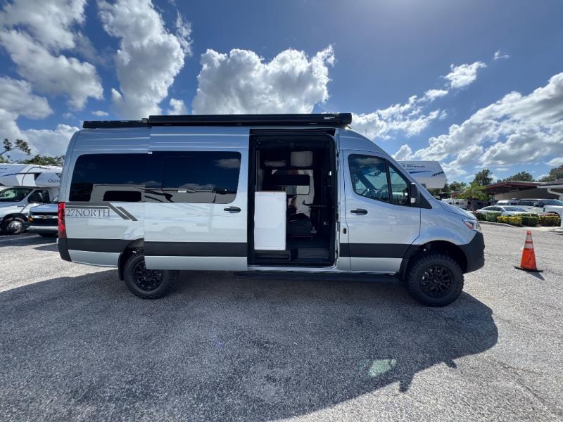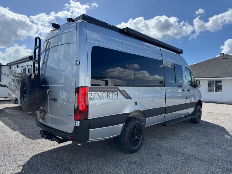 The 27North Adventure Vans are innovative, luxurious, and packed with convenient features to make each journey enjoyable! You will appreciate the quality construction and attention to detail on each model, along with a Mercedes-Benz Sprinter 4x4 chassis for a durable foundation. The Agile Offroad Ride Improvement Package and automatic transmission will make the drive easier than ever, plus there is solar power to provide off-grid capabilities. There are comfortable sleeping spaces, kitchen amenities that will allow you to cook meals while you're on the road, plus generous storage spaces for your belongings and camp gear. An indoor/outdoor speaker system will let you listen to your favorite tunes as you travel, and the 10' powered awning will provide some much needed shade when you're relaxing outdoors.
