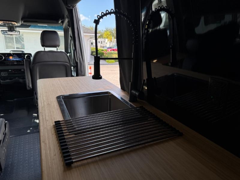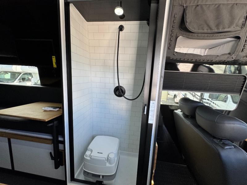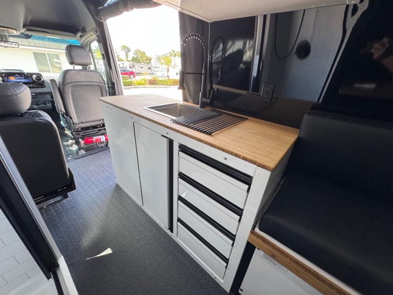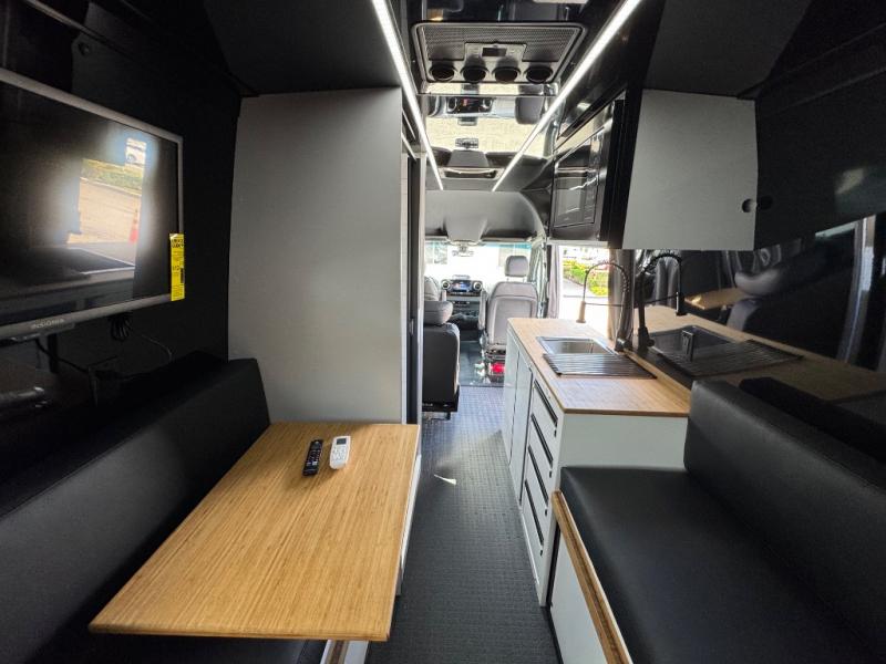 This van features a 170" wheelbase that is ready for adventure when you are! The 4x4 all-wheel drive means you can conquer tough terrain plus there is an automatic transmission. Inside, you'll find a pantry/wardrobe/storage, heavy duty aluminum racks to keep your gear tucked away, plus toe kick and under-cabinet LED lighting. The leather dinette converts to a bed/sleeping area where you can dine each day and sleep soundly. In the morning, you can prepare breakfast on the dual burner induction cooktop or in the microwave oven, plus there is an Isotherm drawer refrigerator/freezer for your perishables. You will also love the gear garage with dual bike racks so you can bring your wheels along!