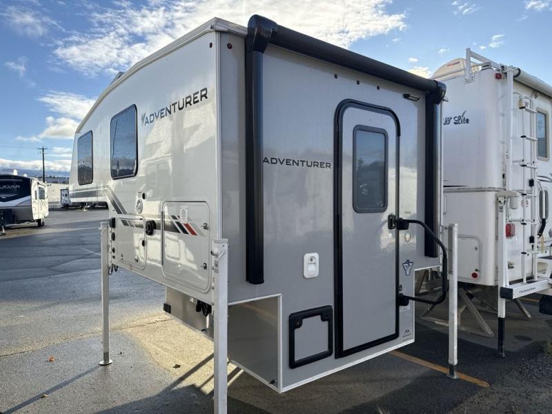 Each one of these Adventurer Manufacturing Inc. Adventurer truck campers is made to last with true four-season insulation and premium construction materials. The TRU weight transparency sticker lets you know exactly what you're getting when you choose these truck campers, and the Next Generation Happijac, manual jacks will make set up easier than ever. There are many interior comforts, including seamless edge countertops, a stainless steel sink, ample storage space, and more! There are also available options to choose to further customize your truck camper, some come take a look!