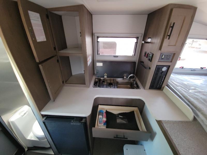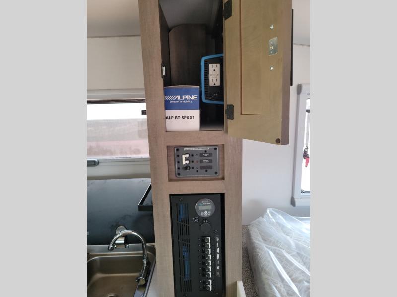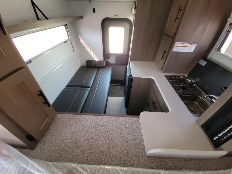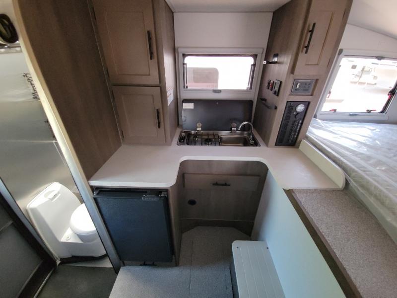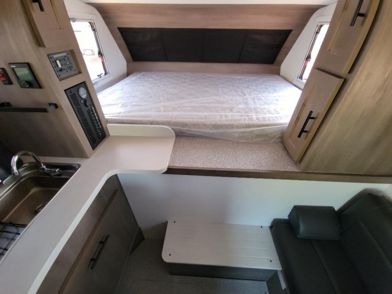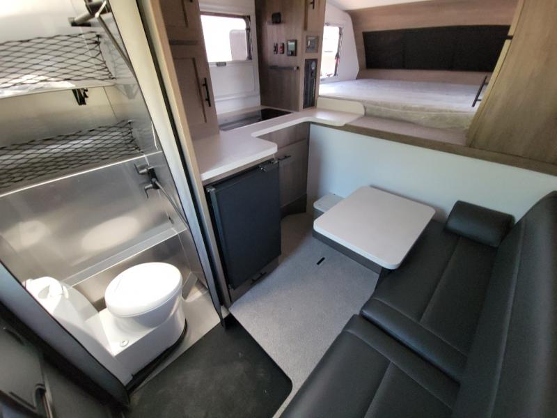 This true half-ton truck camper is lightweight, but not light on features! You can easily sleep up to five each night with the front queen bed and roll-over sofa, plus an optional bunk! The adventure locker/wet bathroom is a waterproof, modular space that doubles as a heated gear locker, making this space more versatile! In the kitchen you can make meals on the two burner stove with an integrated sink plus a Nova Kool 3.1 cu. ft. refrigerator with a freezer compartment. This unit also includes an Unbound Power Tower (UPT) with USB ports to keep you powered up, plus you can choose solar power options for off-grid capability!