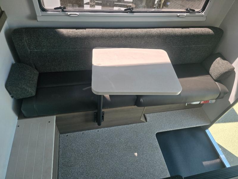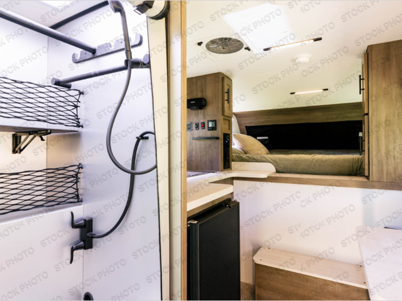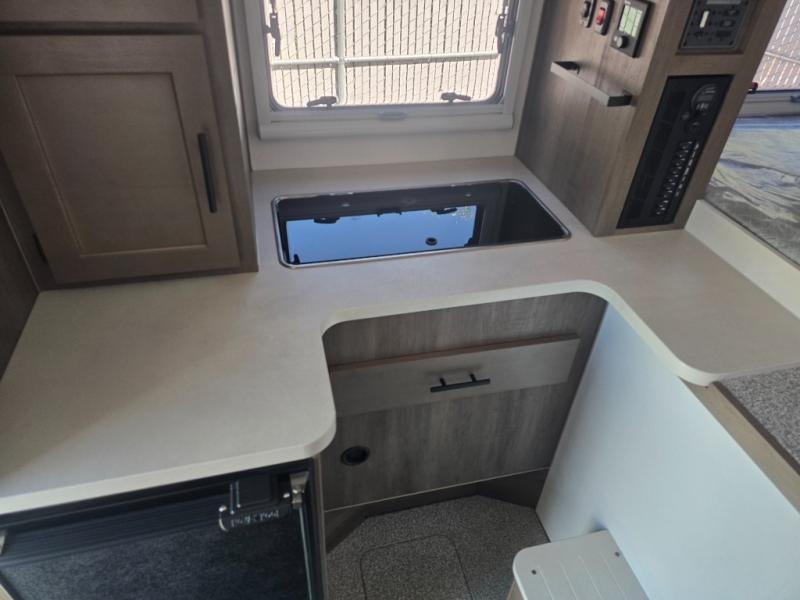 This true half-ton truck camper is lightweight, but not light on features! You can easily sleep up to five each night with the front queen bed and roll-over sofa, plus an optional bunk! The adventure locker/wet bathroom is a waterproof, modular space that doubles as a heated gear locker, making this space more versatile! In the kitchen you can make meals on the two burner stove with an integrated sink plus a Nova Kool 3.1 cu. ft. refrigerator with a freezer compartment. This unit also includes an Unbound Power Tower (UPT) with USB ports to keep you powered up, plus you can choose solar power options for off-grid capability!