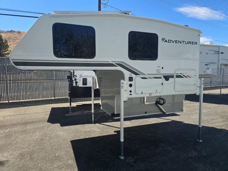 Each one of these Adventurer Manufacturing Inc. Adventurer truck campers is made to last with true four-season insulation and premium construction materials. The TRU weight transparency sticker lets you know exactly what you're getting when you choose these truck campers, and the Next Generation Happijac, manual jacks will make set up easier than ever. There are many interior comforts, including seamless edge countertops, a stainless steel sink, ample storage space, and more! There are also available options to choose to further customize your truck camper, some come take a look!